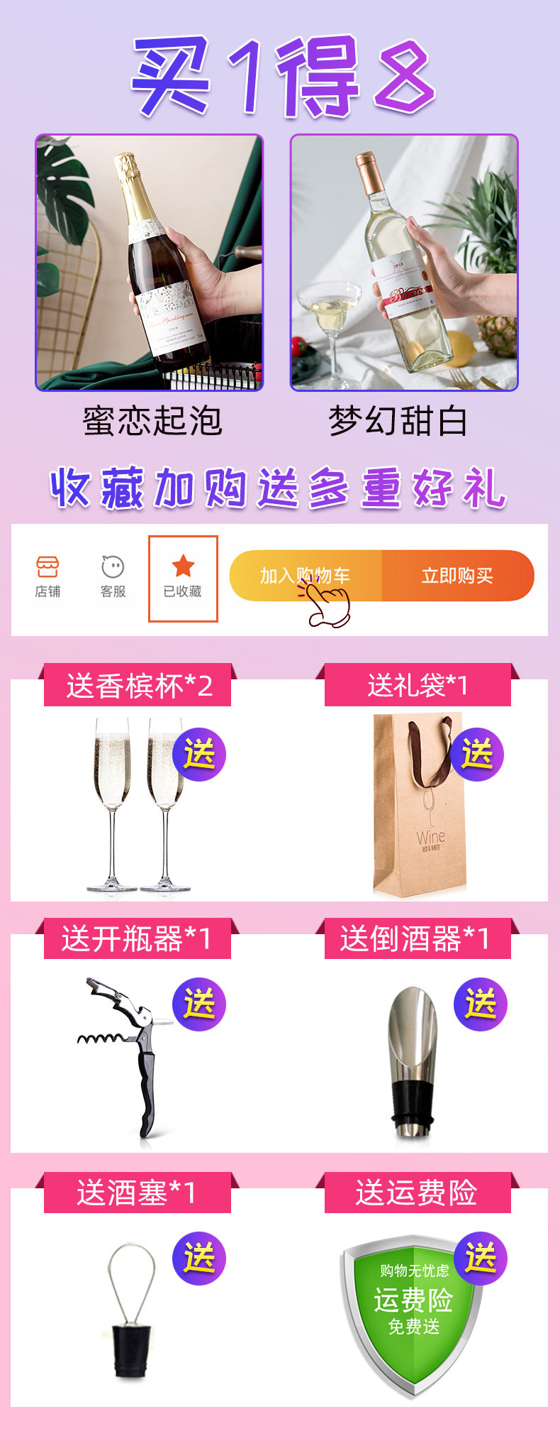 | Цвет: | Купить один, получи один бесплатный+шампанский+винная посуда, Итальянская оригинальная бутылка персиковая пена+сладкий белый+отверстие для бутылки |