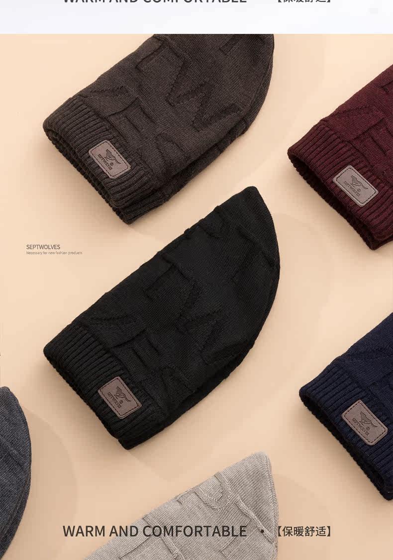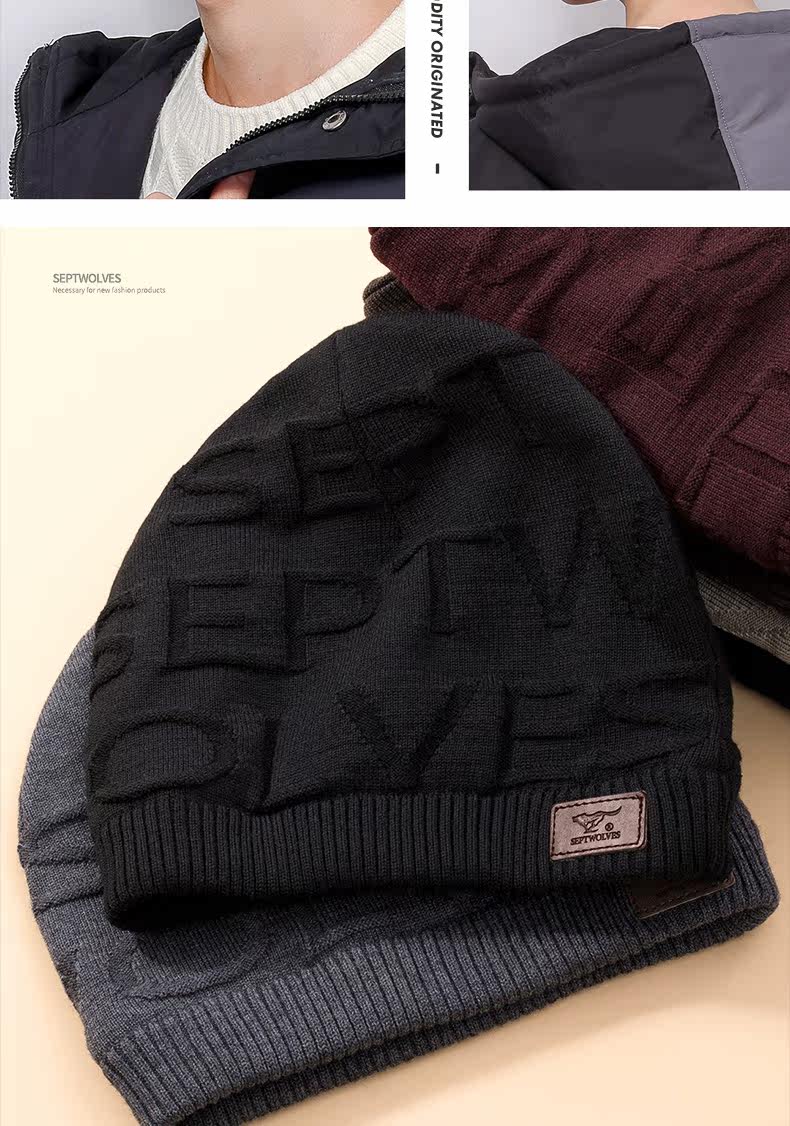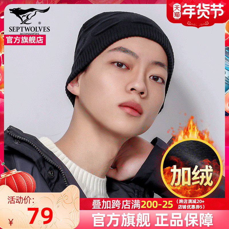 Septwolves, мужская удерживающая тепло шерстяная зимняя ветрозащитная вязаная шапка, в корейском стиле
