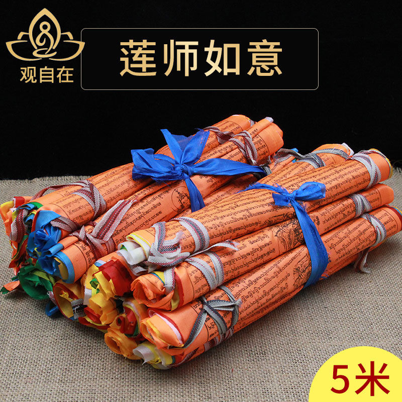 Тысячи мудрости благоприятные Писания Тибетские лотос Мастер Руи хочет быть шелковой тканью Фенгма Пяти -Колорный Флаг сутры, 5 метров, 5 метров 5