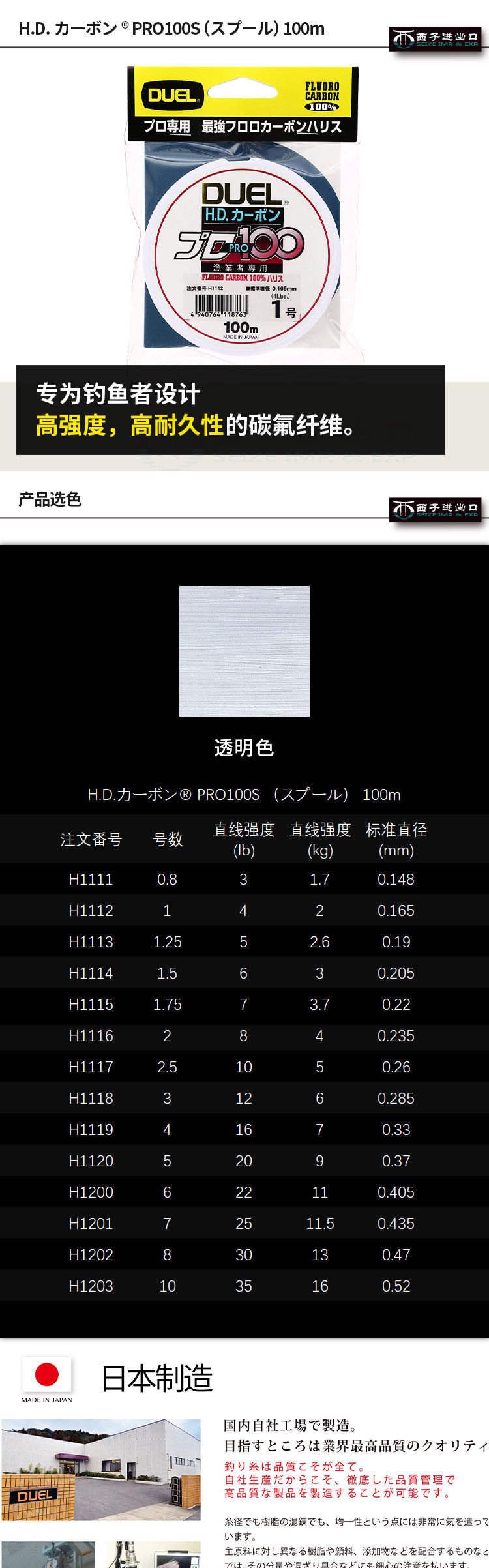 Девять -летняя старая магазин Пять цветов пяти цветов японского Durle Duel Профессиональный рыбак из углеродной линии чистый углерод