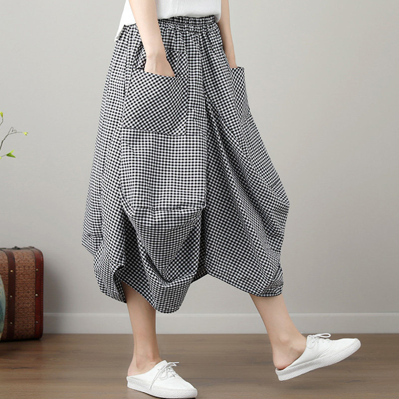 Летняя одежда, ретро юбка для отдыха, большой размер, в корейском стиле, свободный крой, из хлопка и льна
