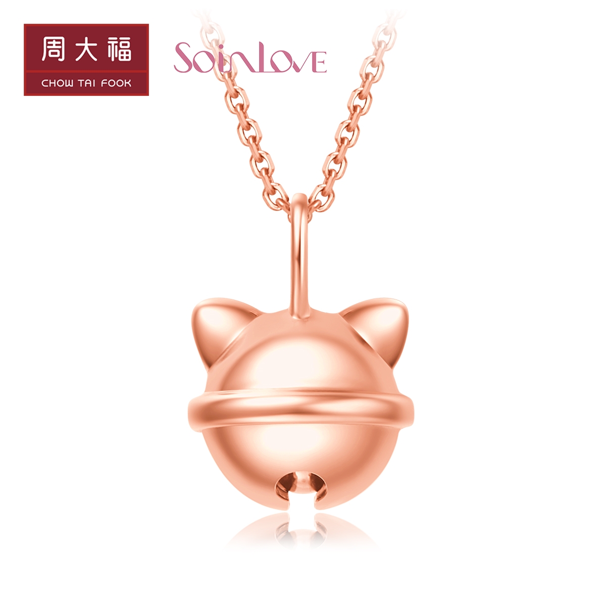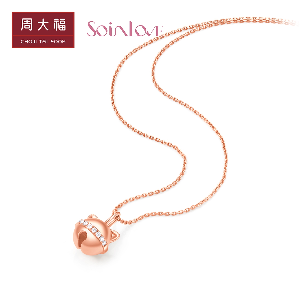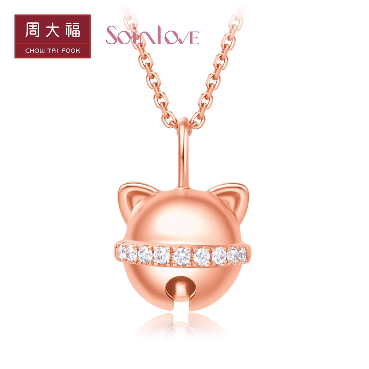 周大福 Soinlove Honey Gold Cat Bell 18k Gold Color Diamond Pendent Vu1482