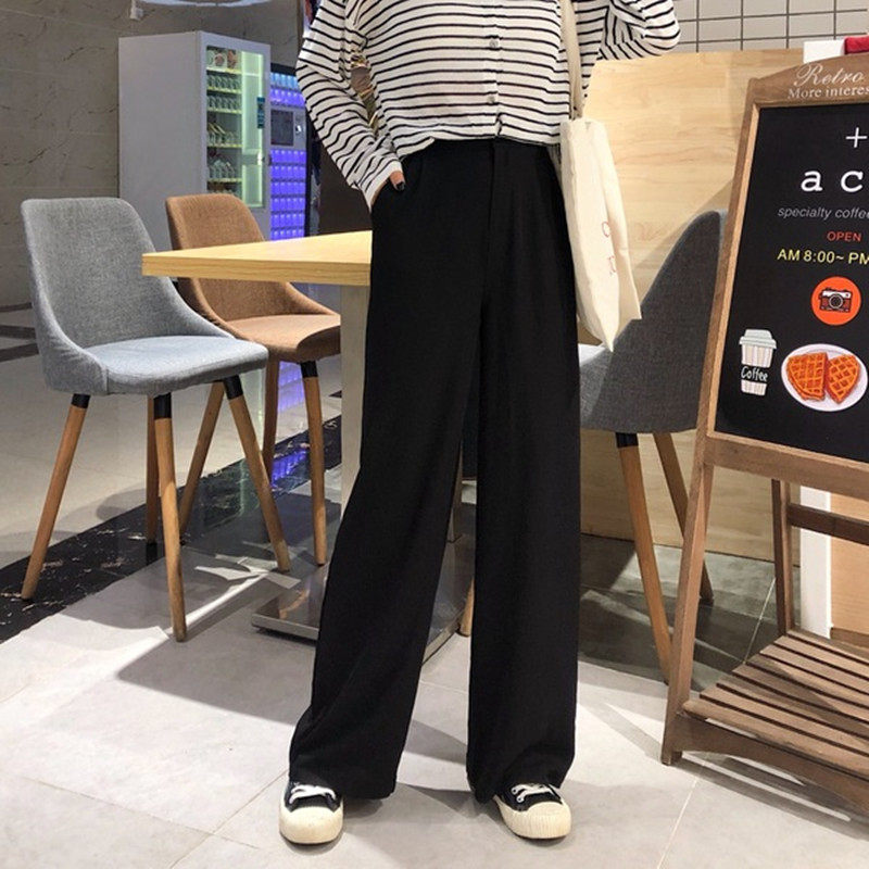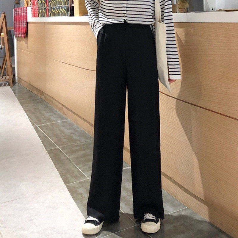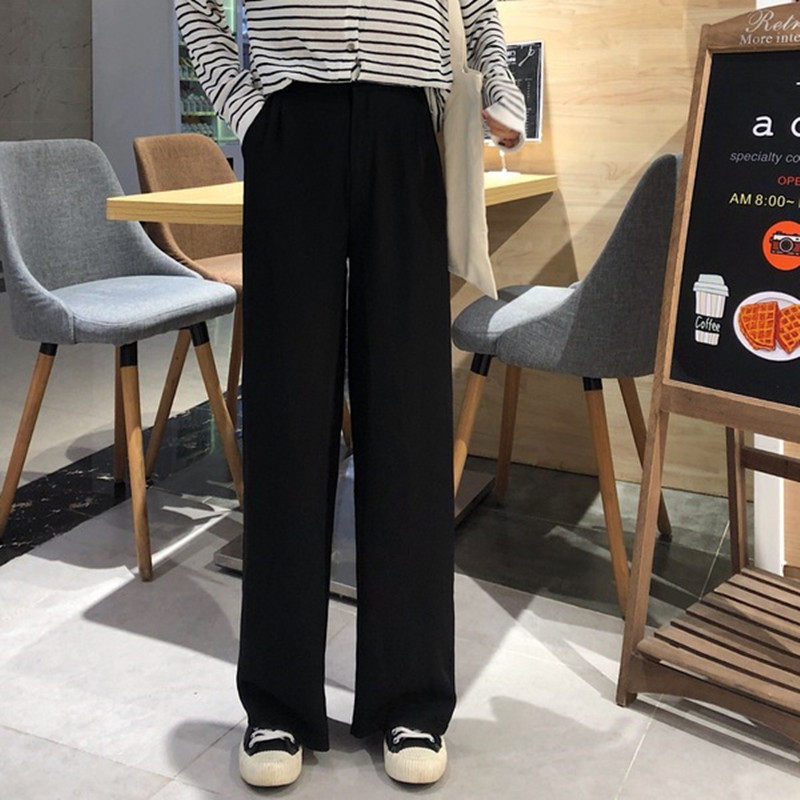 Демисезонные штаны, леггинсы, черный костюм, 2023, в корейском стиле, высокая талия, свободный прямой крой