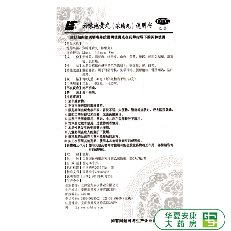 上龙 Liuwei Dihuang таблетки (концентрированная таблетка) 200 таблетки*1 бутылка/коробка Ziyin Тоническая почка для потери инь почек HX