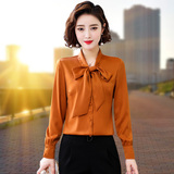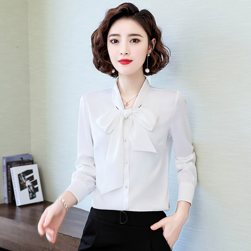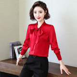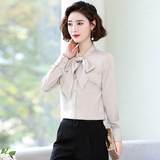 Рубашка с бантиком, весенний шелковый шифоновый лонгслив, 2020, в западном стиле