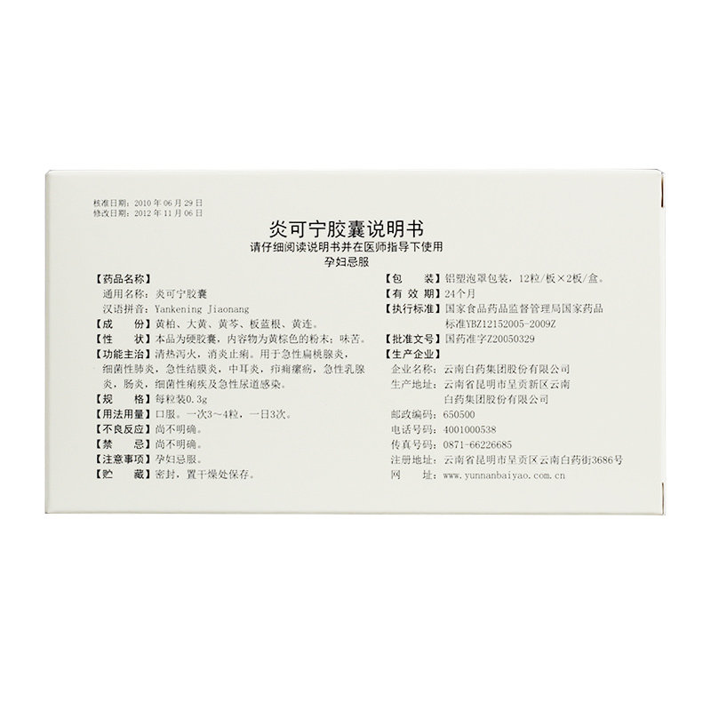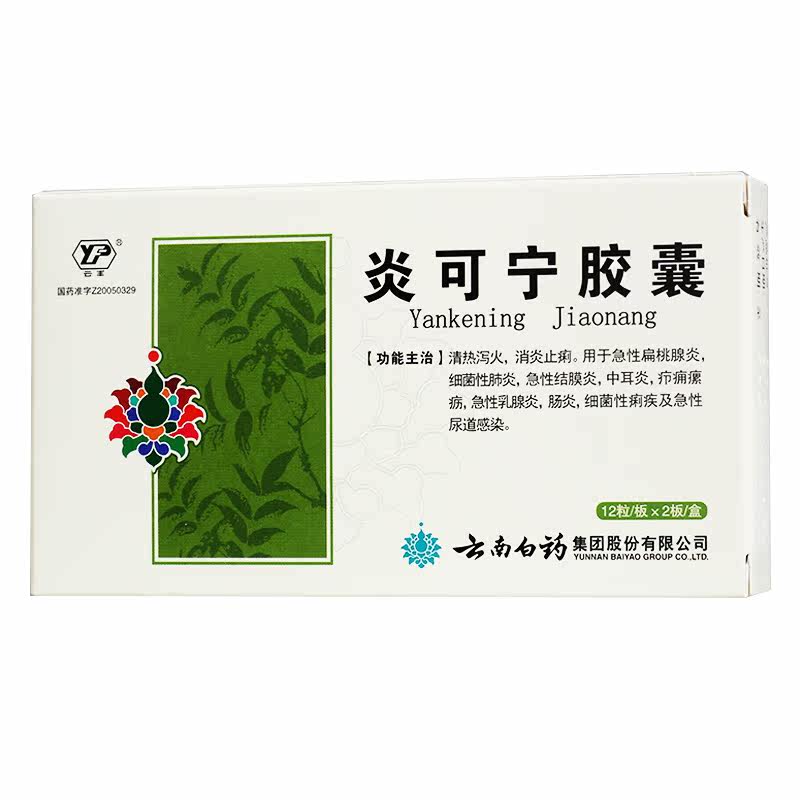 Юньнан Байяо Кен Нин Капсулы 0,3 г*24 капсулы/коробка Юнфенг Острый тонзиллит бактериальный пневмония Острый конъюнктивит при среднем отите средний