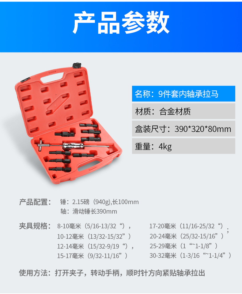9 -Piece Внутренний подшипник вытягивает внутренний подшипник с внутренним подшипником подшипника внутреннего подшипника инструмента автоматического ремонта
