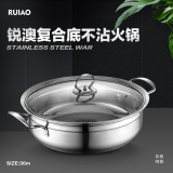 Rui AO 30 см. Композитный нижний нижний дно, неживый горячий горшок, электрическая печь Утолщенная из нержавеющей стали Неспирающе