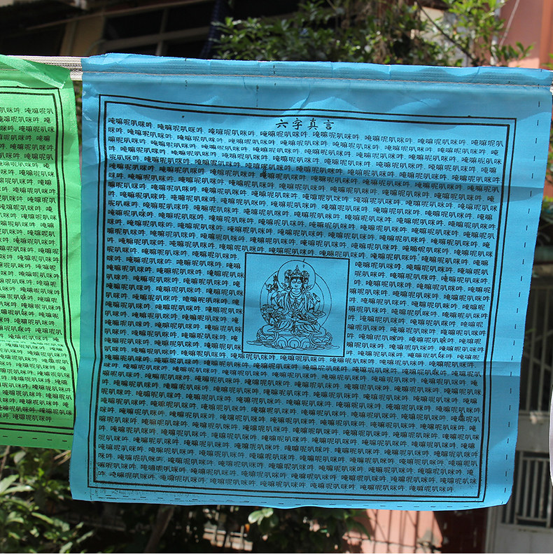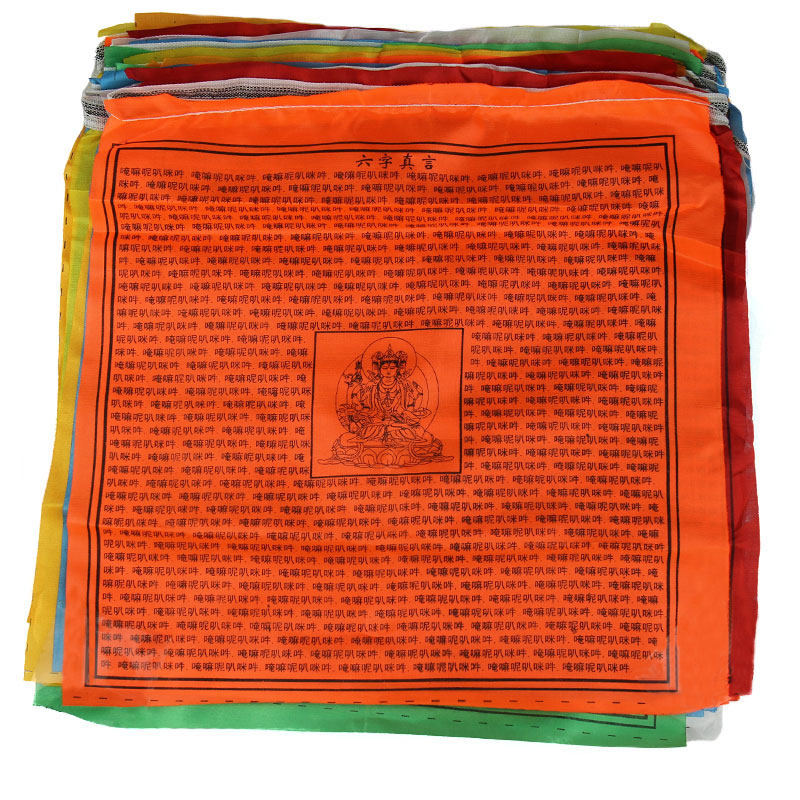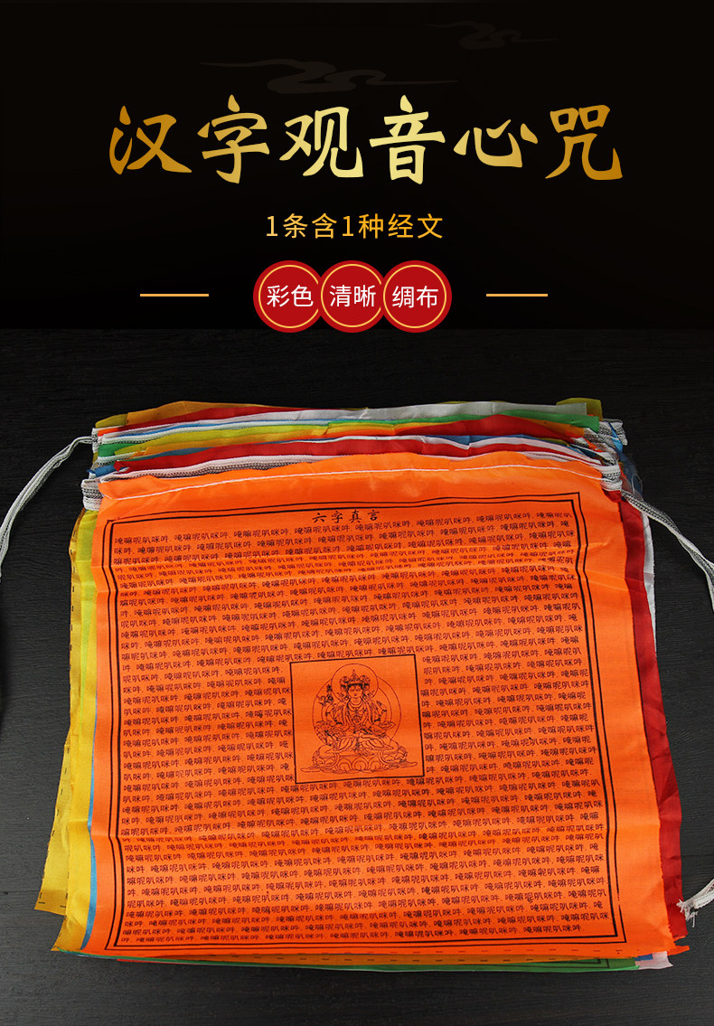 Версия китайского персонажа китайской версии Гуаньян Мантра шесть персонажей, мантра Гуаньян Писания Писания, красочный ветер, флаг лошади, дракон 5 метров, 21 лицо
