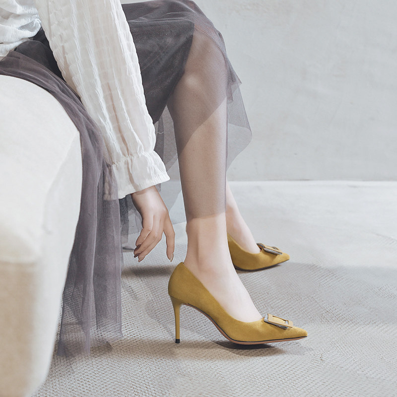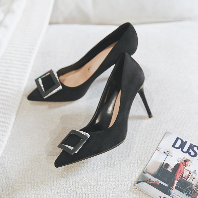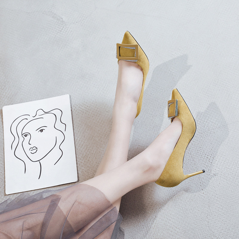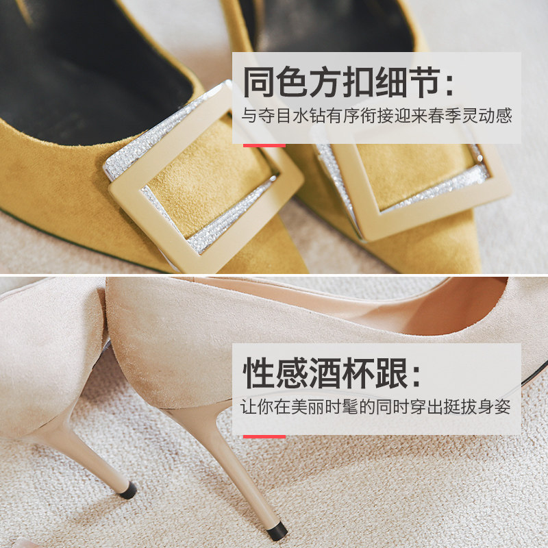 一代佳人 Новые туфли с острым носком, квадратными пряжками со стразами, высокие каблуки, летние женские универсальные туфли на шпильке с небольшим горлом, женские туфли телесного цвета.