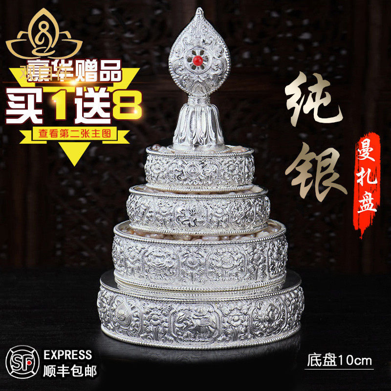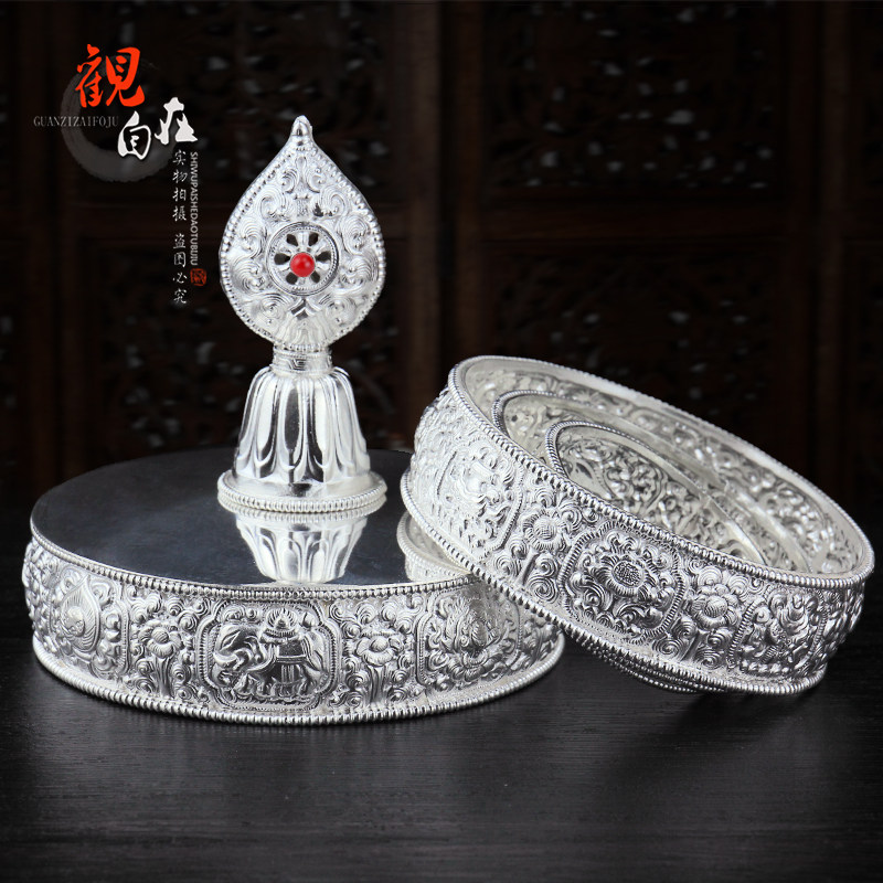 Чистое серебряное манзаки Панпан Манджу Луо восемь благоприятной половины рук и половина рук для Манфанты Тибетской Манса Драгоя 10 см.