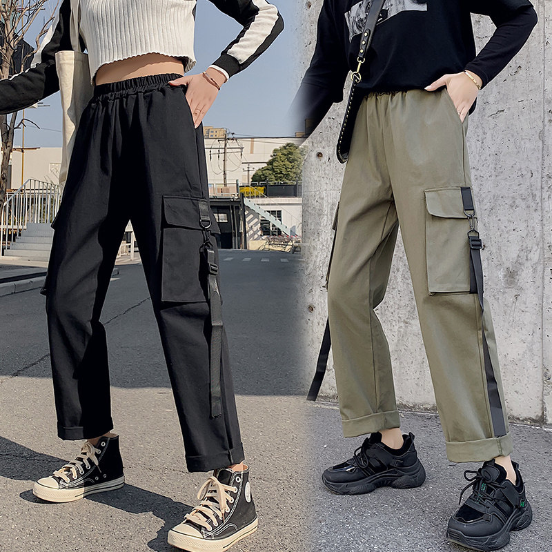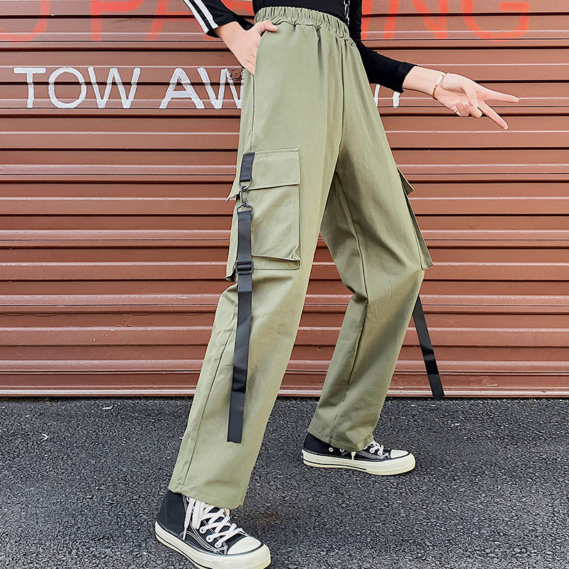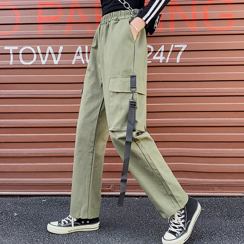 Приталенные демисезонные черные штаны в стиле хип-хоп, высокая талия, коллекция 2021, оверсайз, свободный прямой крой
