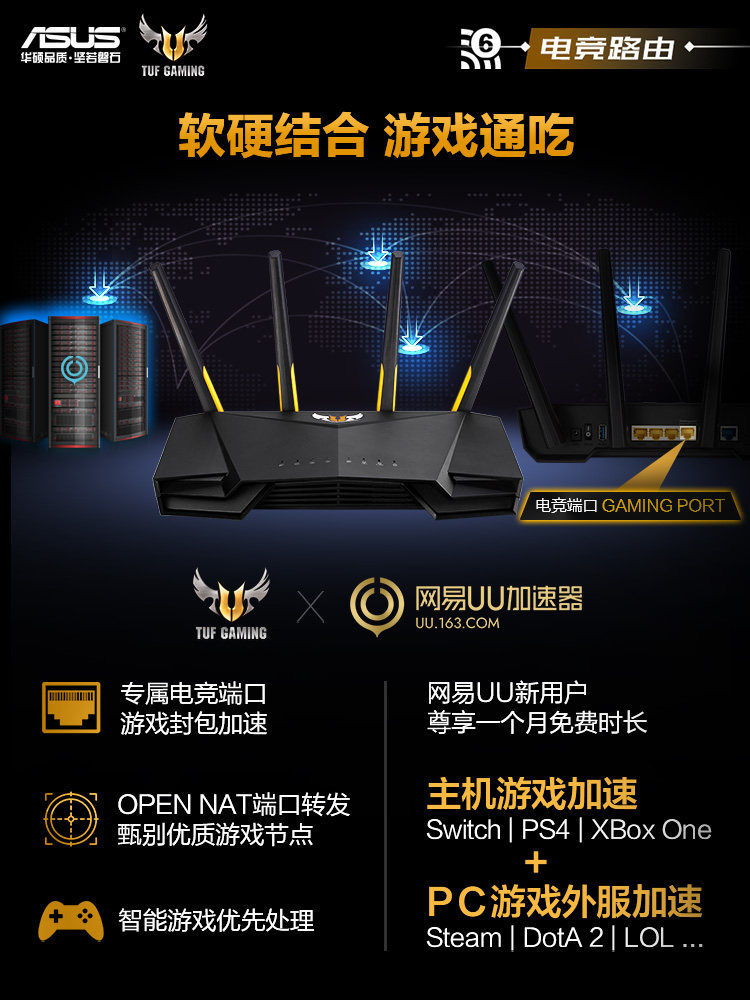 [Tmall] Asus/Asus tuf Gaming Ax3000 Wall King King High -Speed Wi -Fi6 Двойной беспроводной гигабитный гигабитный предприятие прохождение порта ускорения домашней игры Wi -Fi