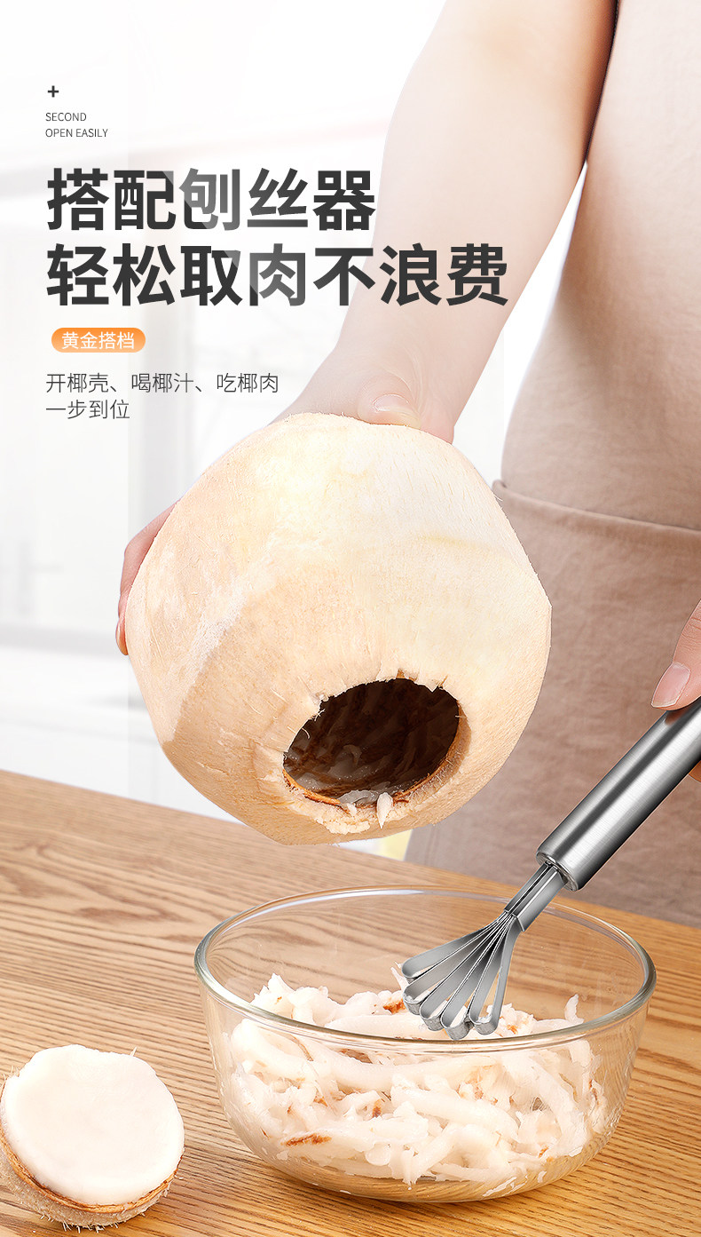 Кокосовой артефакт Кокосовой, мясной скребок, большой рт, кокосовое зеленое открытое крышка открытая отверстие, кокосовое бритая нить, инструмент открытой оболочки