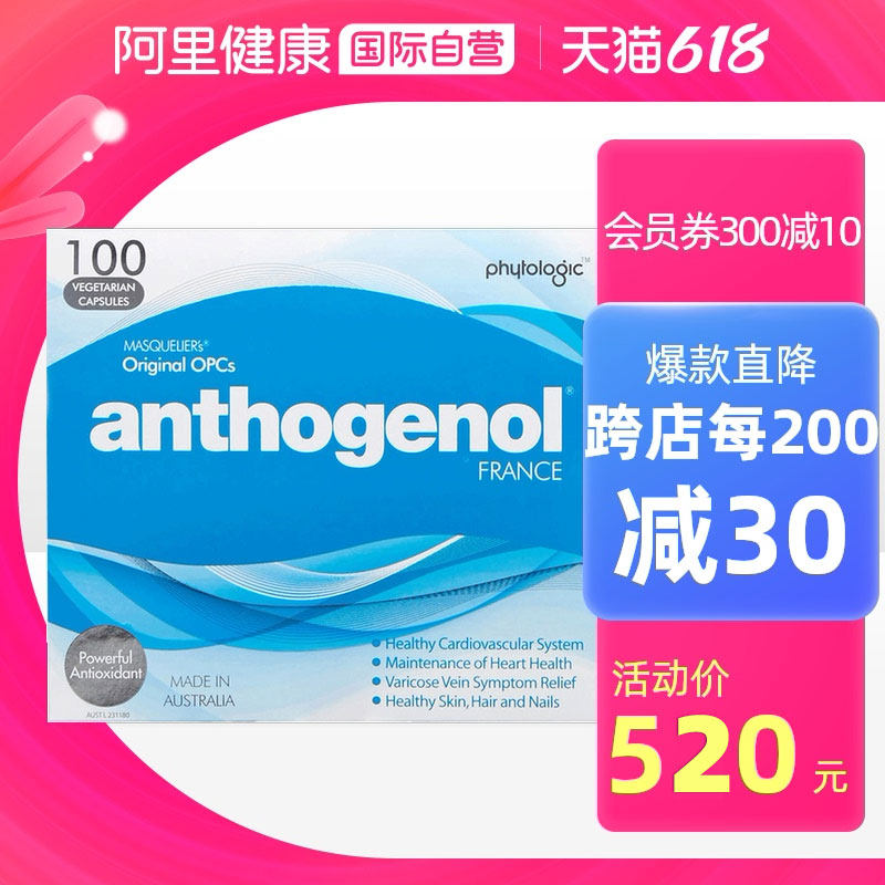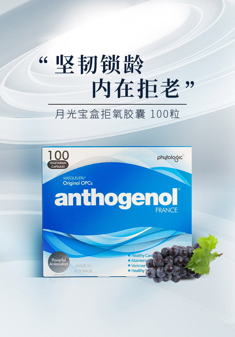 Австралийский Anthogenol Moonlight Treasure Box с низким содержанием поли-антоциана, порошок эссенции виноградных косточек, регенерация коллагена, 100 капсул