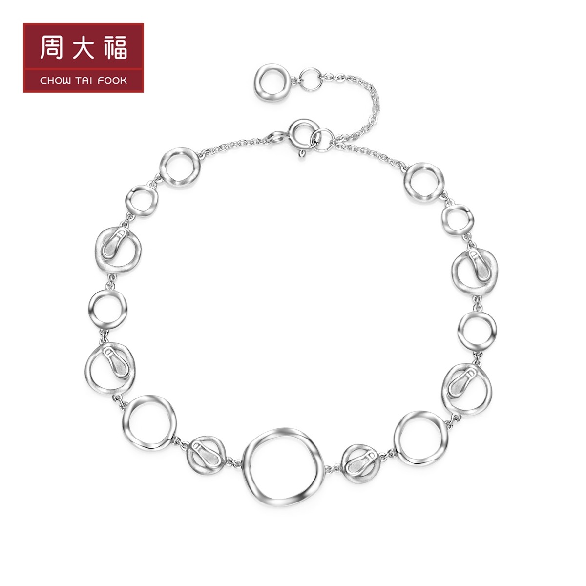 周大福 Ювелирное украшение, круглые отпечатки рук и ног, серебряный браслет, простой и элегантный дизайн, серебро 925 пробы