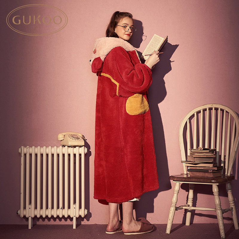 Gukoo/果壳 Демисезонный бархатный банный халат, пижама, мультяшная милая юбка с капюшоном