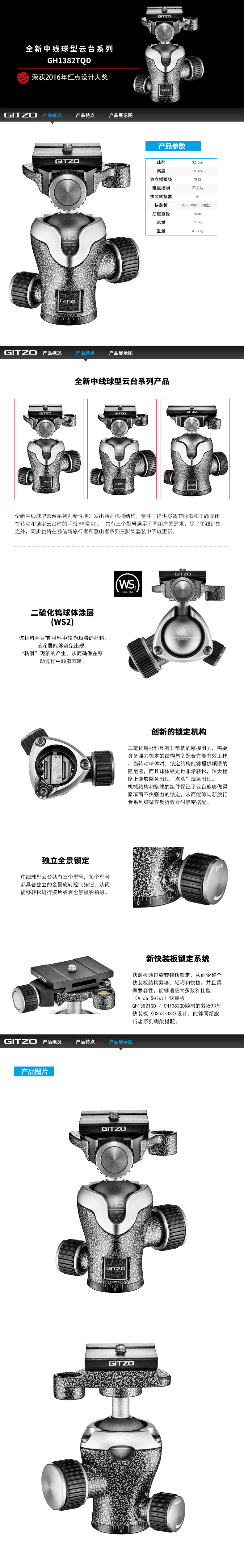 Gitzo gitzo slr цифровая камера Алюминиевая алюминиевый алюминиевый алюминиевый сплав Новый средний шар -тип Gimbal GH1382TQD Бесплатная доставка