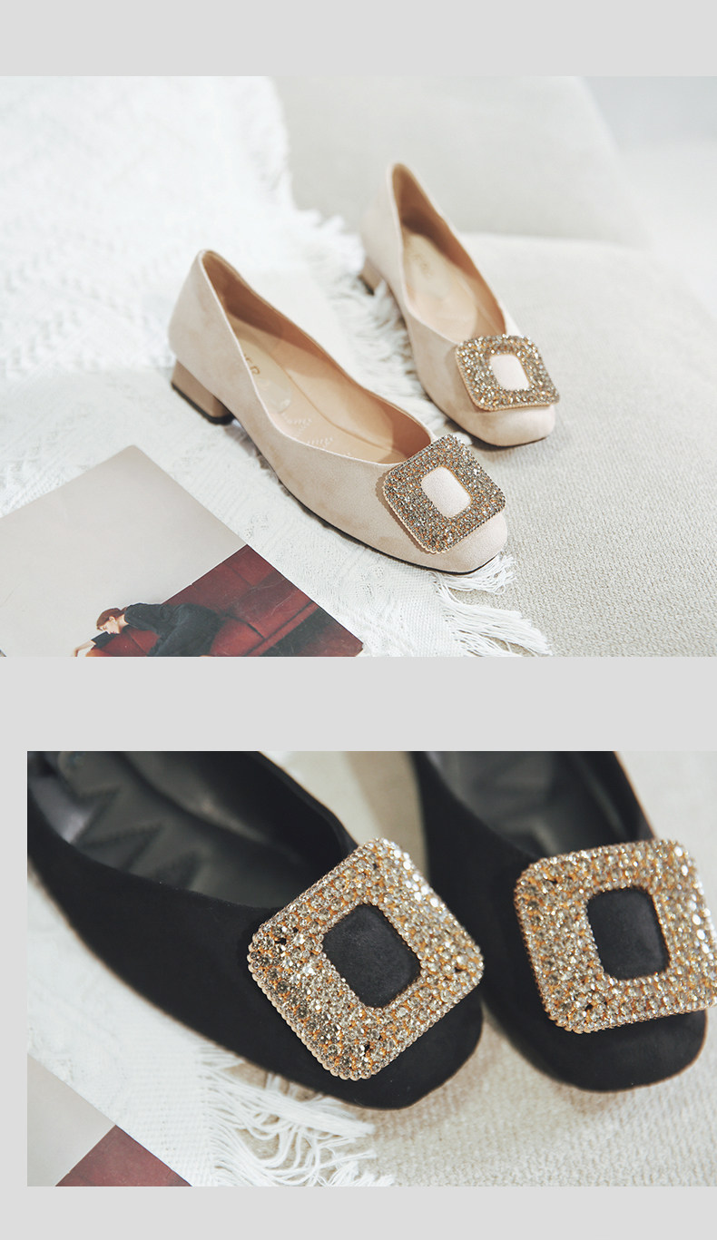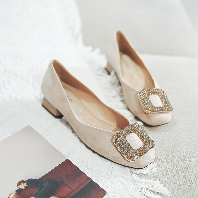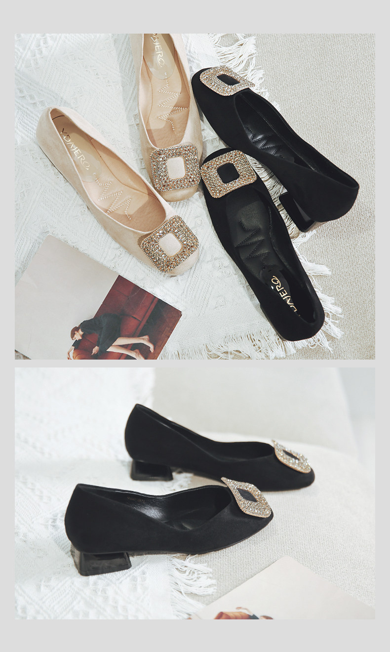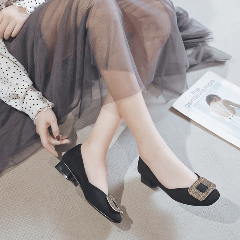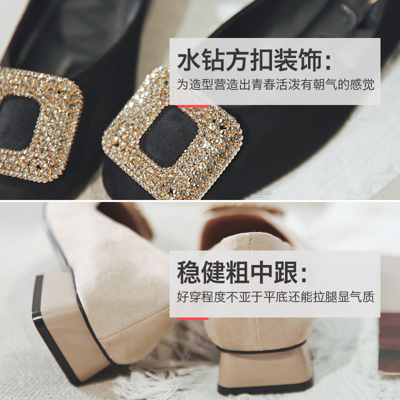 一代佳人 Грубые каблуки одиночные обувь легкая женская женская обувь обнаженная страза Средний каблук с высокими туфлями летние круглые туфли черные