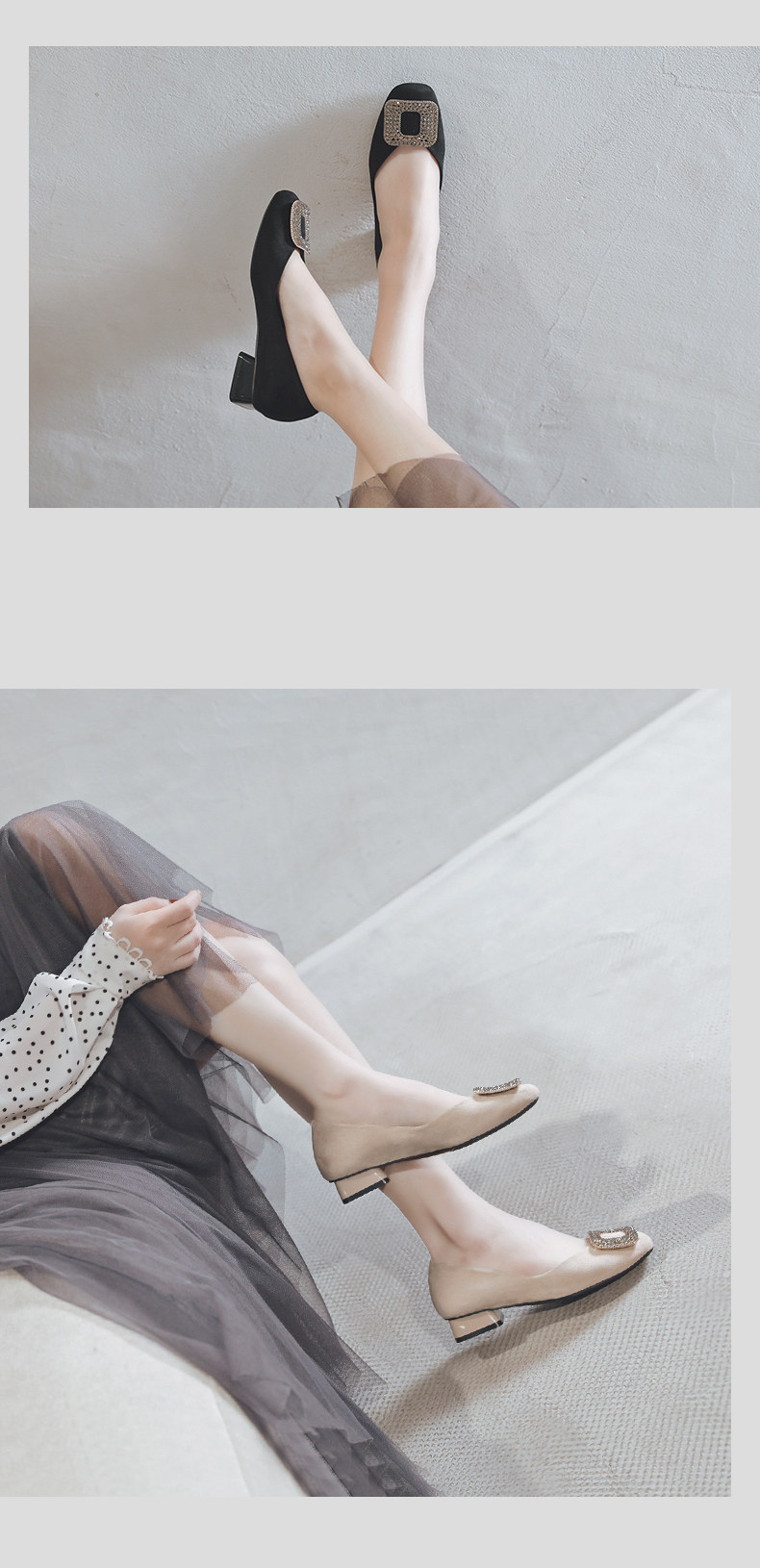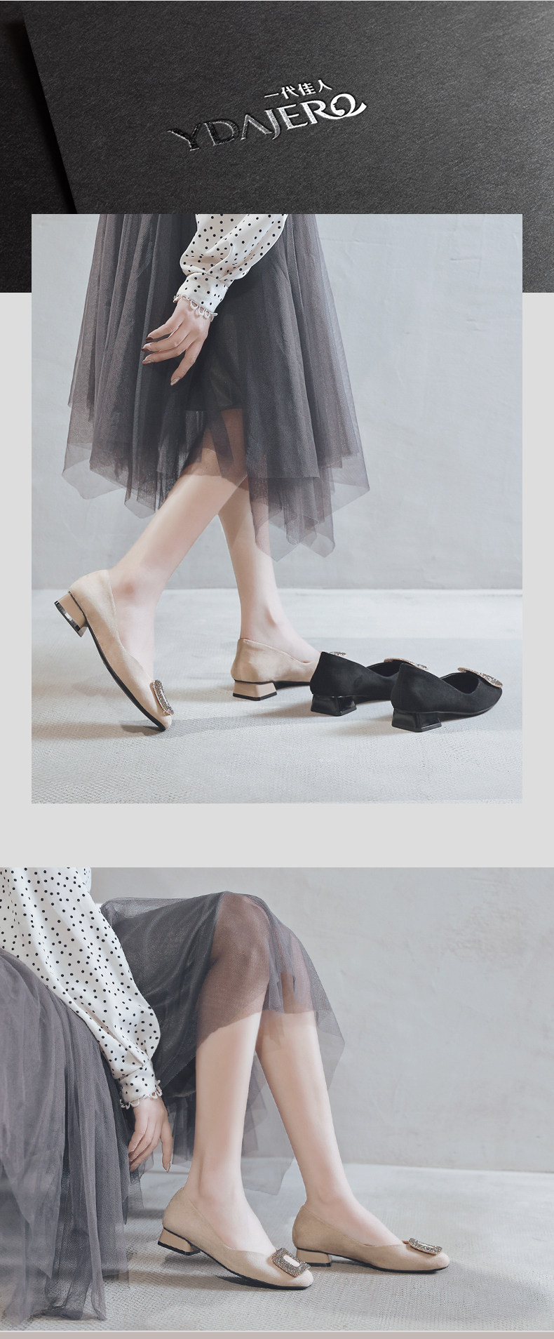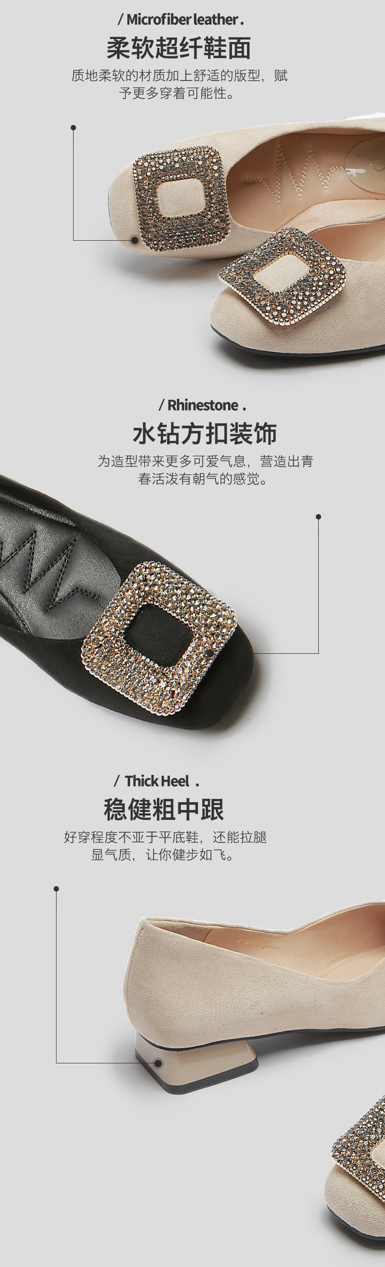 一代佳人 Грубые каблуки одиночные обувь легкая женская женская обувь обнаженная страза Средний каблук с высокими туфлями летние круглые туфли черные