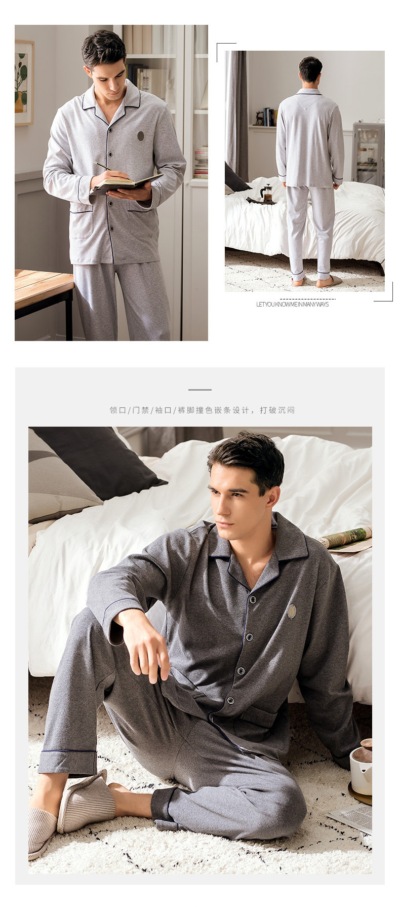 芬腾 Демисезонный лонгслив, пижама, хлопковый мужской зимний кардиган, комплект, большой размер