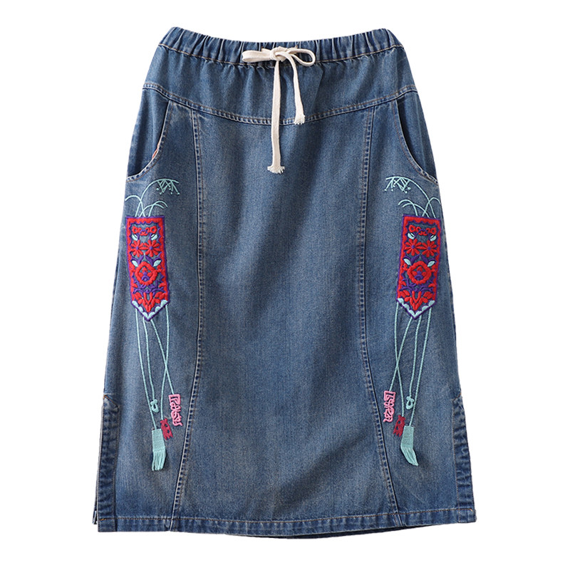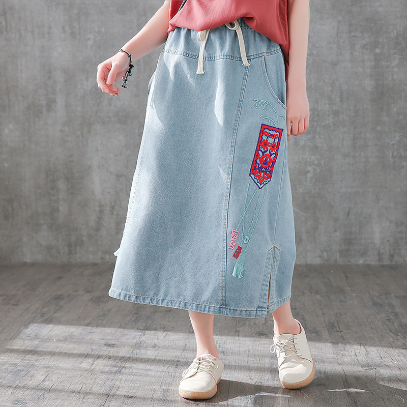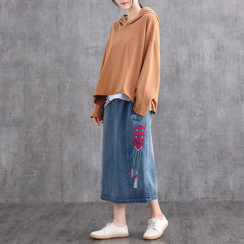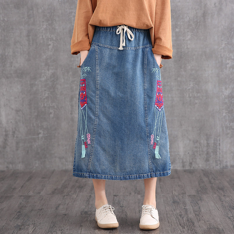 Ретро осенняя длинная джинсовая юбка, 2020, свободный крой, А-силуэт