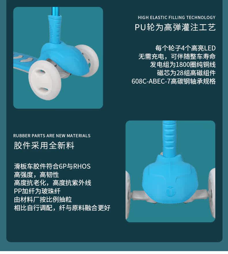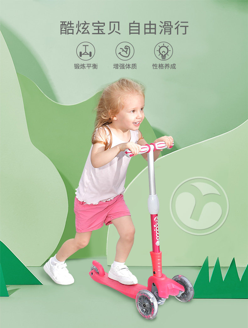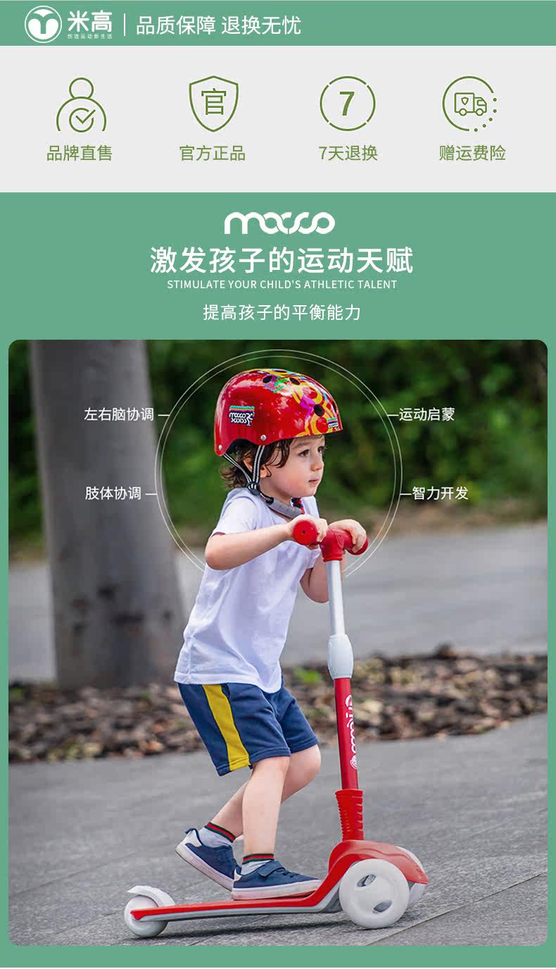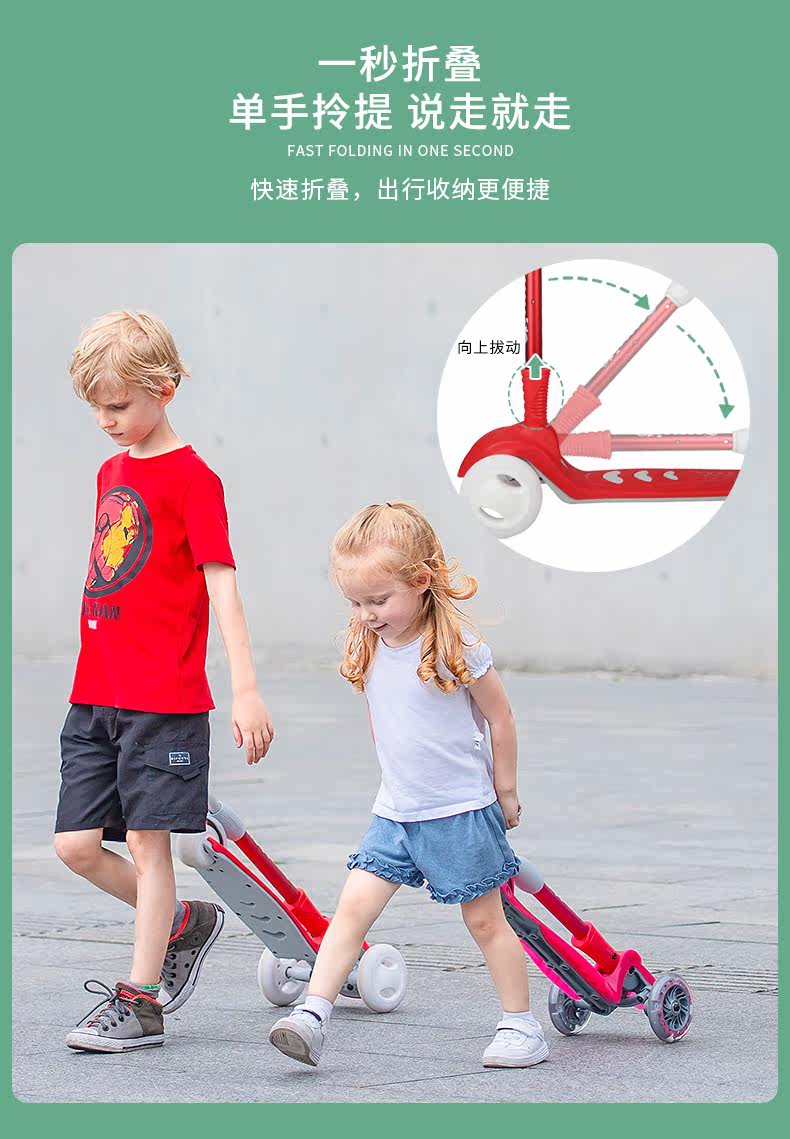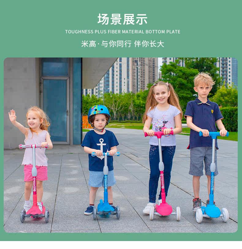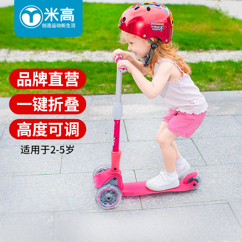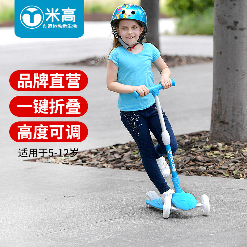 米高 Детский складной самокат, мигающие трехколесные педали, 1-3-12 лет