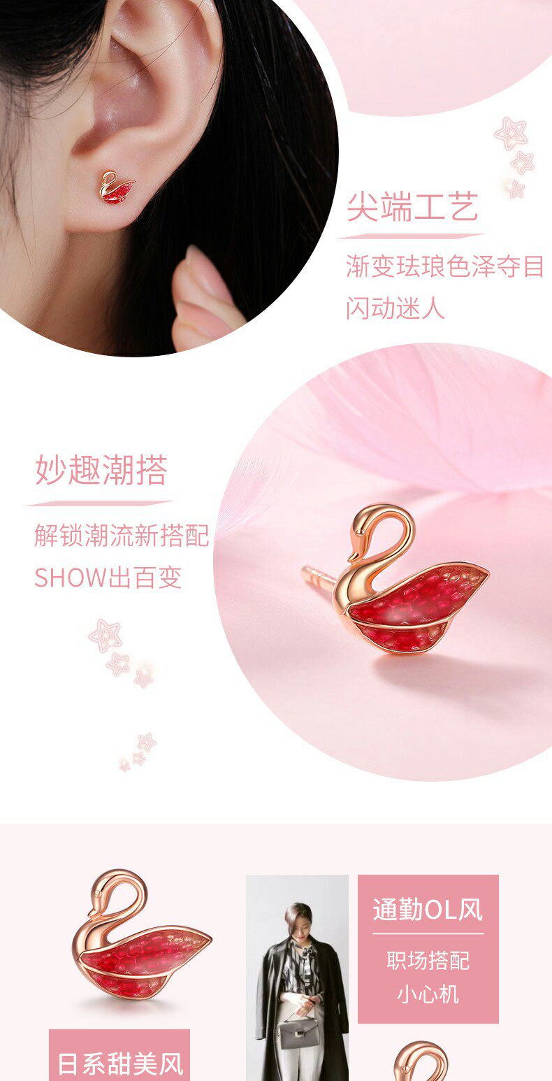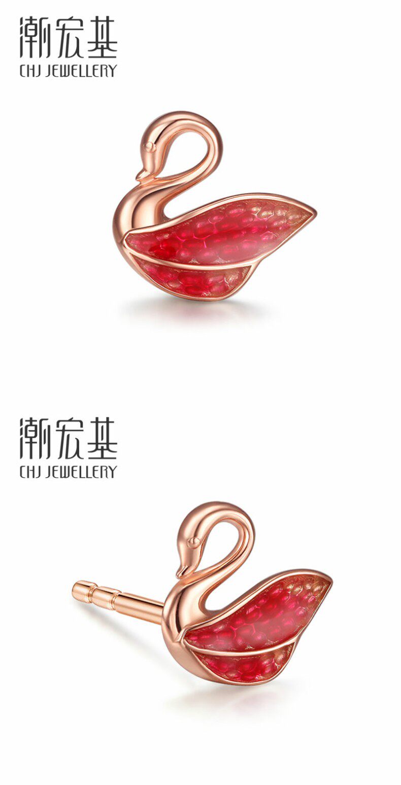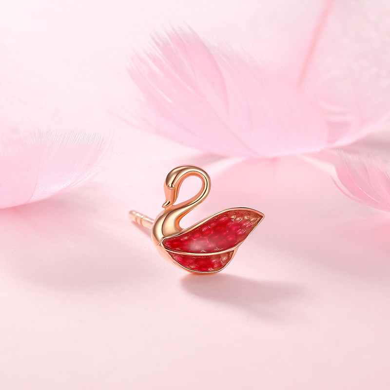 Acer, лебедь, золотые серьги, 18 карат, розовое золото, подарок на день рождения