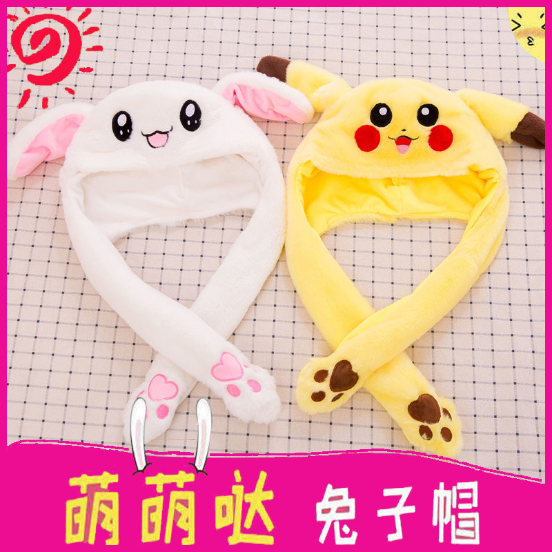 Шапка с длинными ушами кролика-знаменитости в Интернете Пикачу может двигать забавные головные уборы в одном стиле для детей и девочек, чтобы загораться