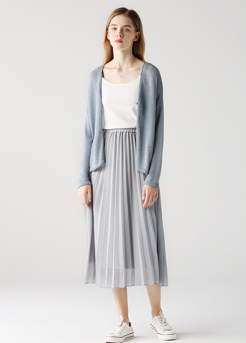 艾米恋 Шифоновая длинная демисезонная юбка в складку, длинная юбка, А-силуэт, высокая талия