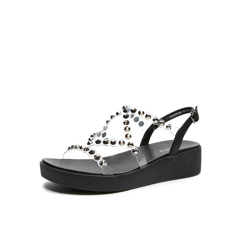 Hotwind/热风 Сандалии на платформе, женская повседневная обувь на толстой подошве на танкетке, черные римские сандалии, новый стиль 2020