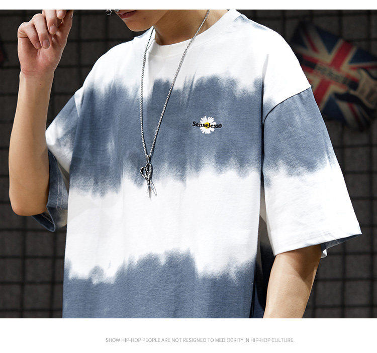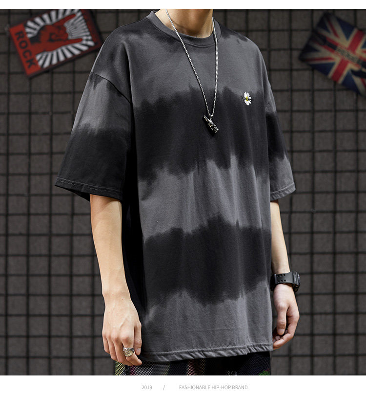 Японская парная одежда для влюбленных, футболка, короткий рукав, оверсайз, градиент