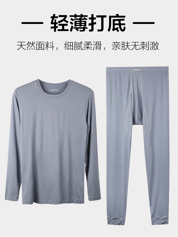 Удерживающее тепло нижнее белье, мужской бархатный лонгслив, термобелье с круглым воротником, тонкий комплект, 14823W