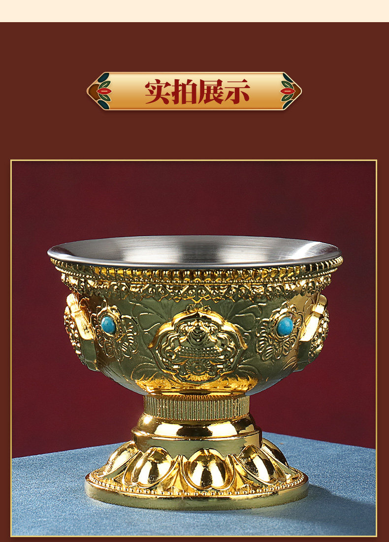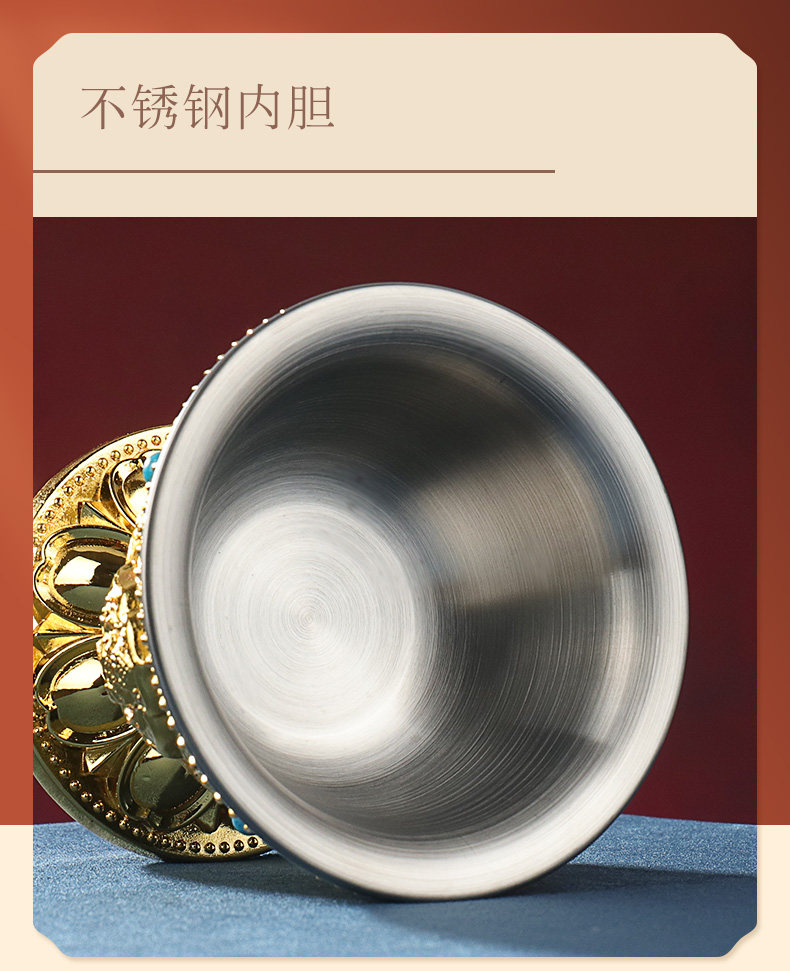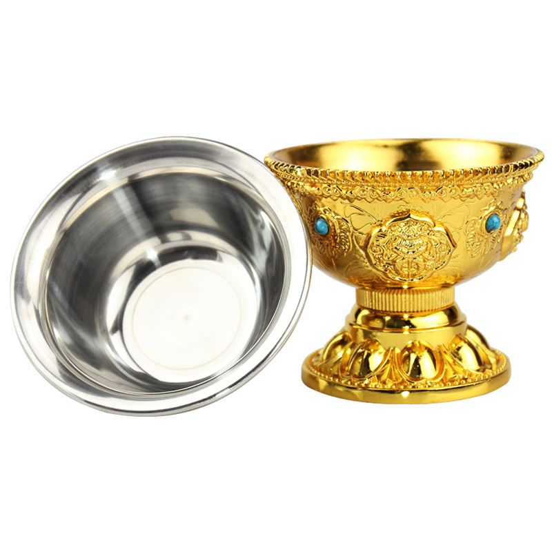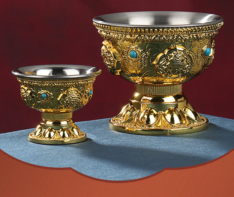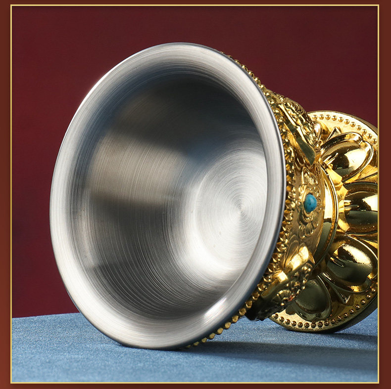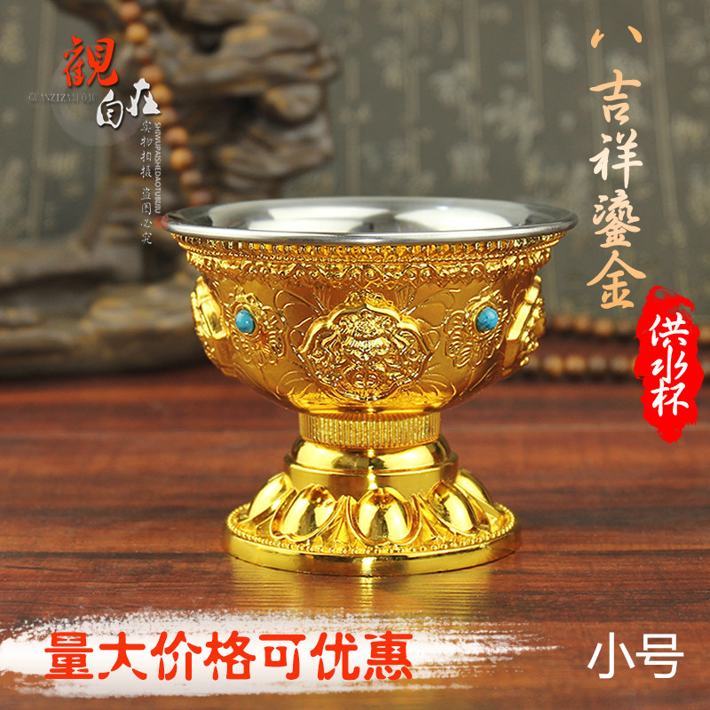 Буддийская поставляет восемь Jixiang Gold Water Supply Watch Wablement Womemy Water Suppling Cup Brewd на внутренней биле из нержавеющей стали.
