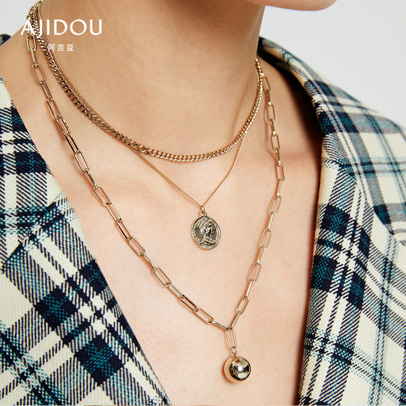 Ретро монеты, ожерелье, цепочка до ключиц, свитер, многослойные аксессуары