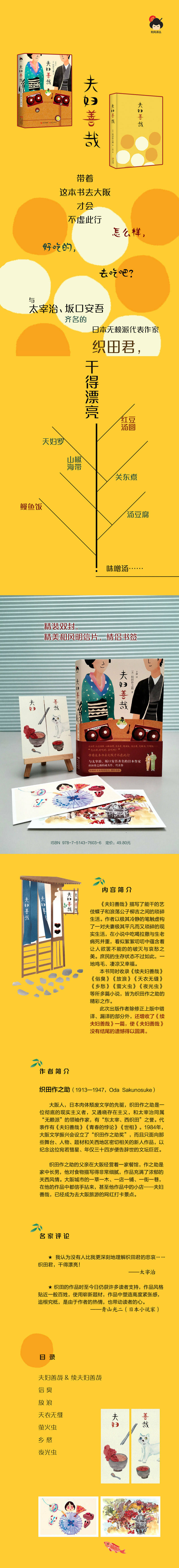 ★ Культура только для чтения“Хефенг перевод”Опубликовал «Расёмон», «Дисквалификация в мире», «Прощание», «Хорошая пара», «Ночь на Галактической железной дороге», «Остров в городе», «Зеленые брови», «О любви и красоте», «Черное и белое», «Лимон», «Пятиэтажная пагода», «Любовь в Юшиме», «Расёмон», «Золотая Якша», «Тринадцать ночей», «Зеленая слива». Бамбук», «Лошадь» и многие другие классические произведения японской литературы, в том числе Нацумэ Сосэки, Акутагава Рюносукэ, Дадзай Осаму, Танизаки Дзюнъитиро, Кода Рохан, Одзаки Момидзи, Хигути Кадзуё и др. В то же время, с целью точного перевода, тщательного редактирования и тщательного оформления, мы стремимся предоставить читателям книги высокого качества как по форме, так и по качеству.