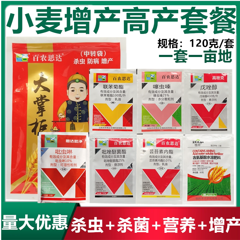 Пакет увеличения производства пестицидов пшеницы для одного распыления и трех профилакций, Гиббеллелзоз порошкообразной падбельный паук, красный паук, инсектицид и фунгицид без доставки.