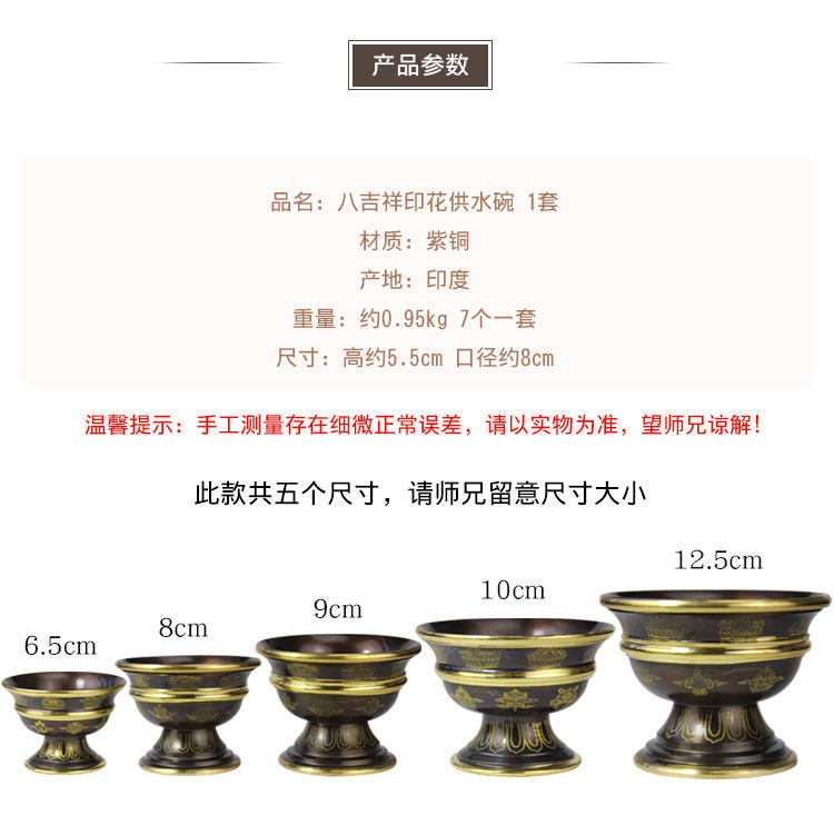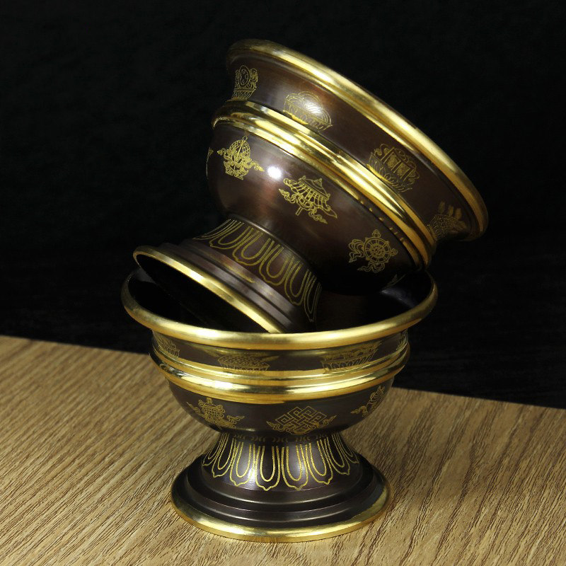 Семейство этнических ветров Индийская медная чаша с высокой водой восемь благоприятных для печати
