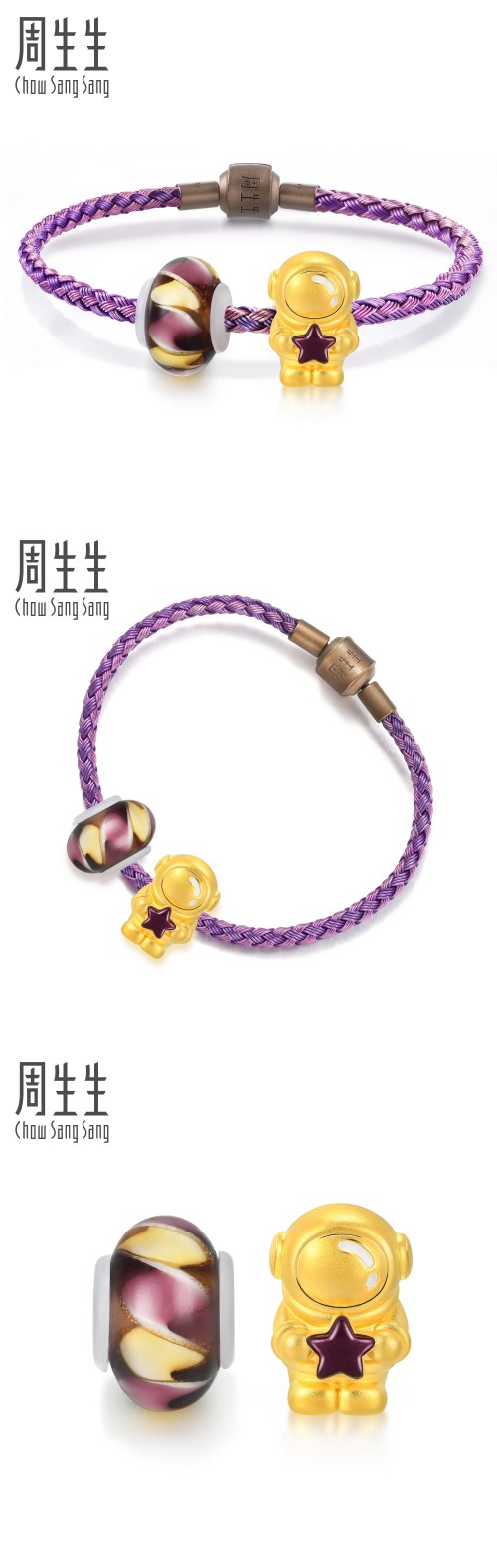 周生生 Золотой космический космонавт с бусинами, браслет