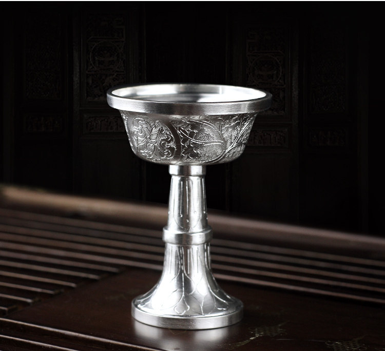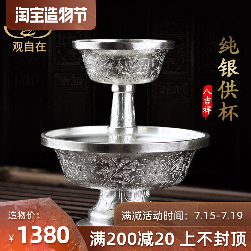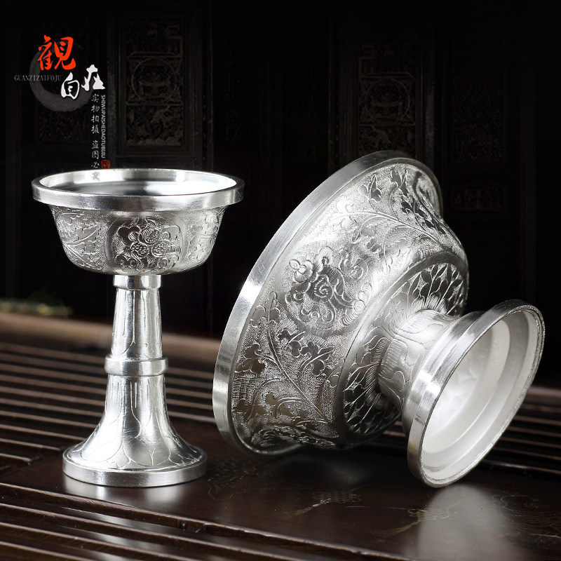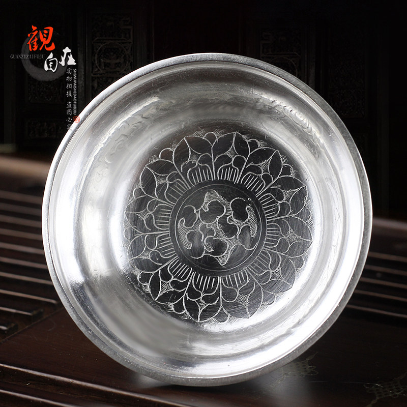 Серебряная серебряная чашка восемь благоприятные лотосные лотосные качели на дому мебели храмовый храм мини -нога серебряная серебряная серебряная чашка буддийские поставки 138G
