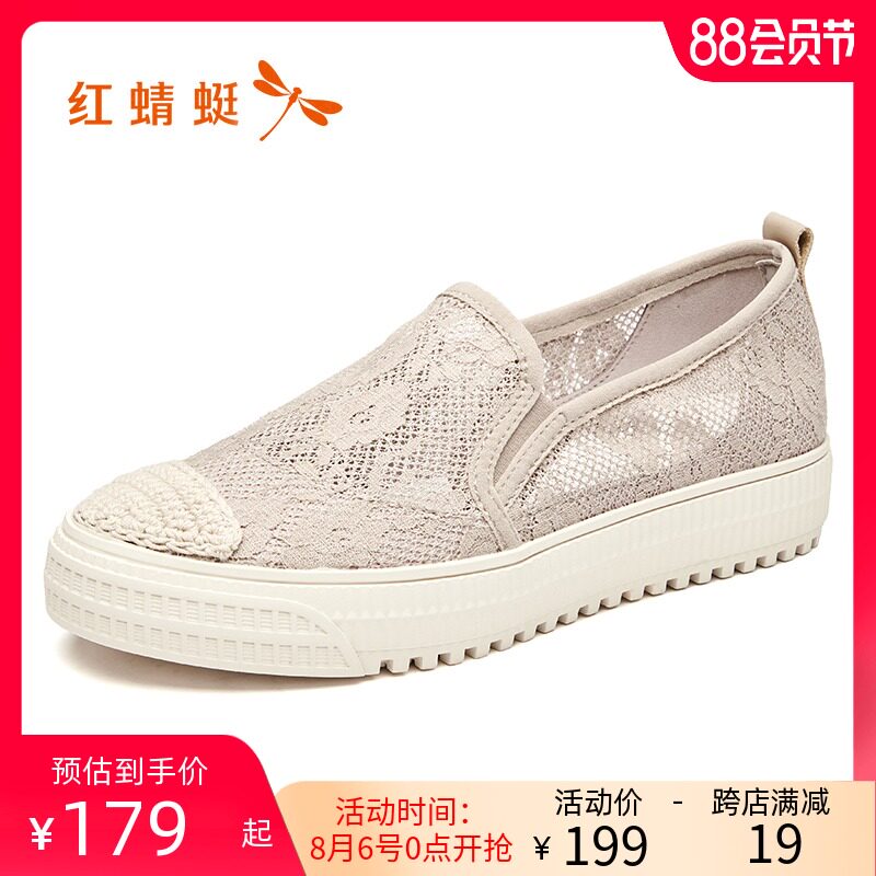 Красная Dragonfly Women's Shoes Summer Breathable Hollow Lazy One Foot Bicking Sandals Женская мода Универсальная глубокая рта квартира -Женские одиночные туфли жены