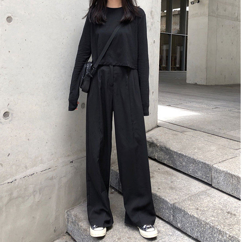 Осенние штаны, черный костюм для отдыха, коллекция 2021, в корейском стиле, оверсайз