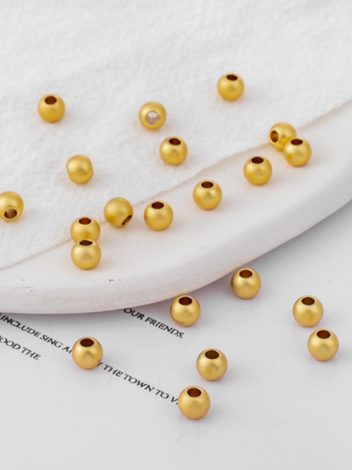 - 2,5 мм матовых золотых бусин (100 штук)