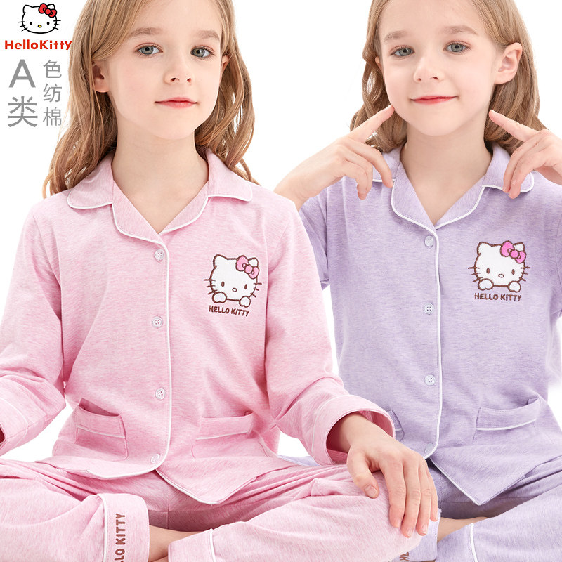 Hello kitty, детская пижама, осенний хлопковый весенний комплект, детские штаны, подходит для подростков