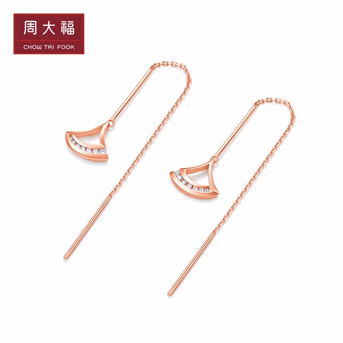 周大福 Геометрические вентиляционные вентиляторы ювелирных изделий 18 тыс. Золотого золотого золота алмаз ушной проволоки U180097 Выбор подарочных