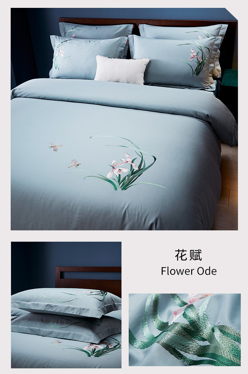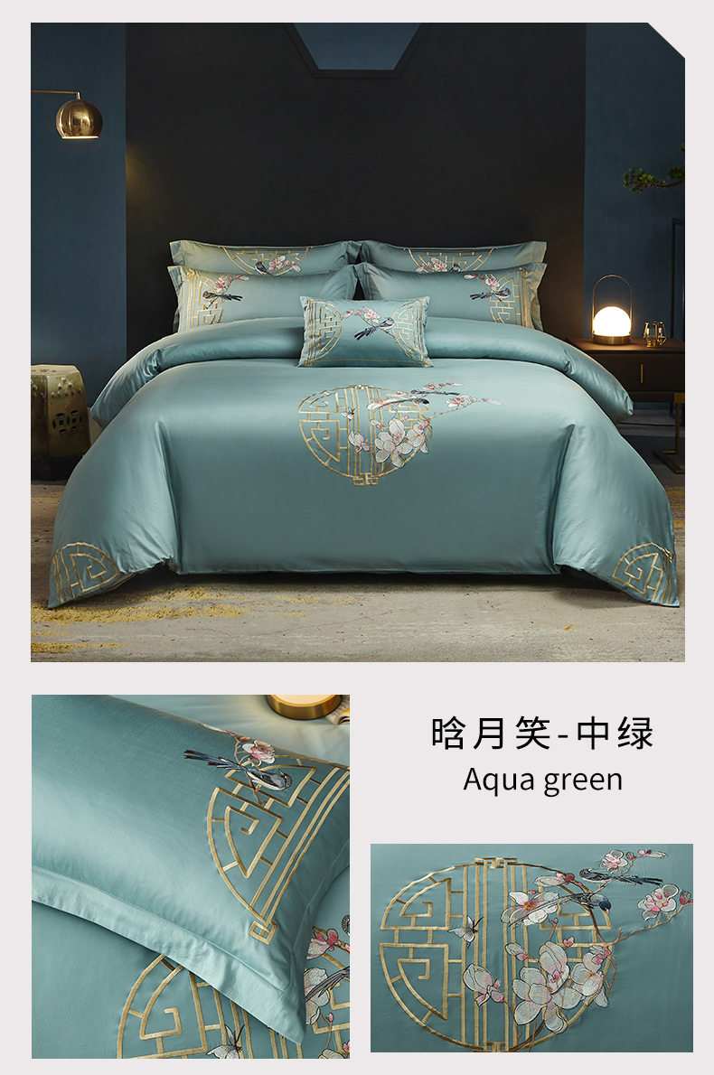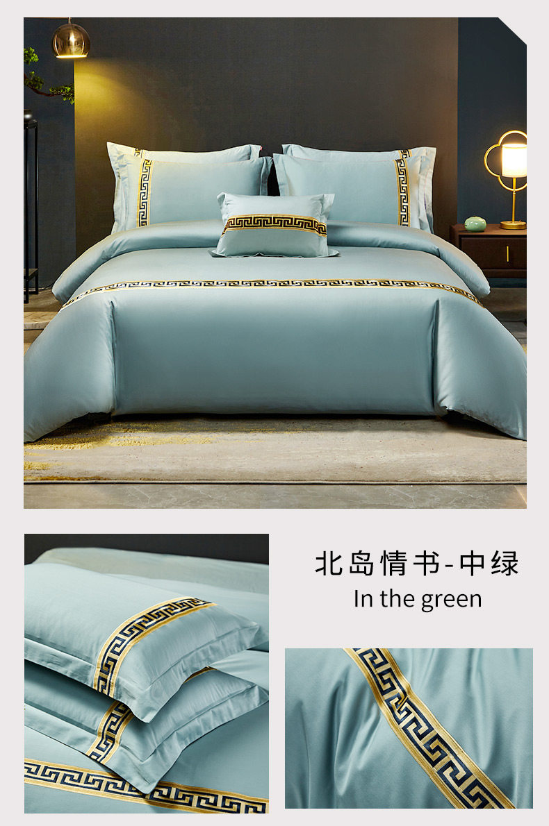 Хлопковый комплект, покрывало, простыня, пододеяльник, 60 шт, 4 предмета, с вышивкой, 1.8м