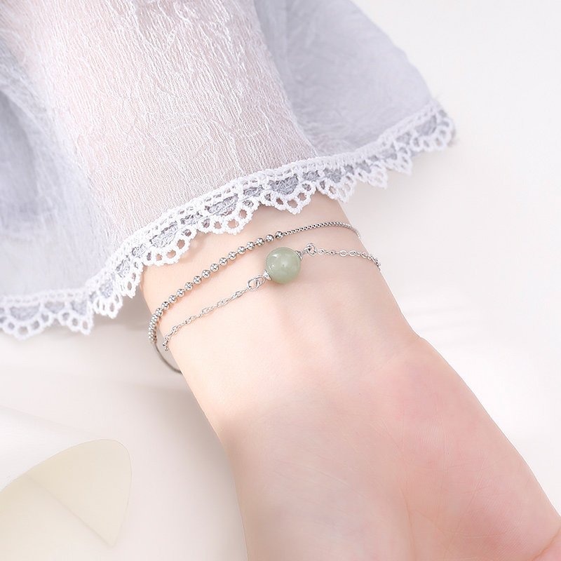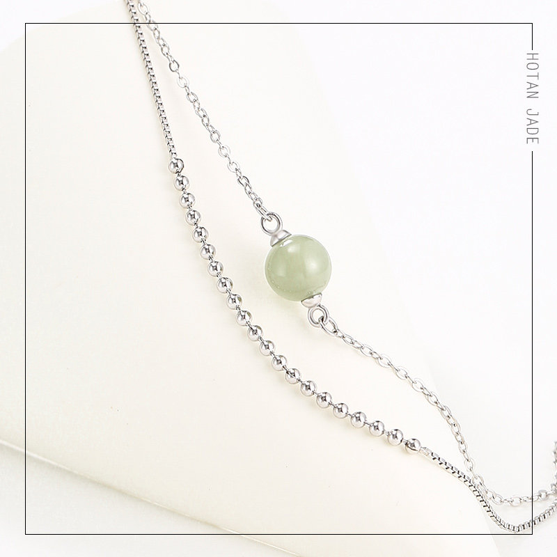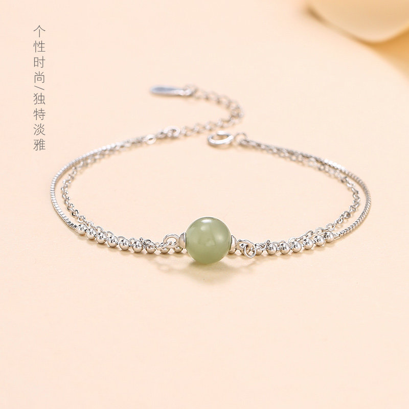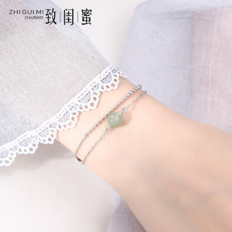 Браслет, четки из круглых бусин, ювелирное украшение из нефрита на день Святого Валентина, серебро 925 пробы, простой и элегантный дизайн, в корейском стиле, подарок на день рождения