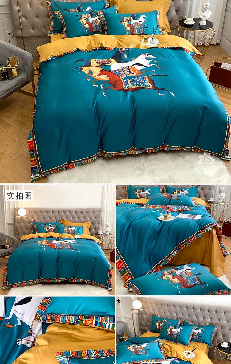 Комплект, хлопковое одеяло, пододеяльник, простыня, покрывало, европейский стиль, 60 шт, 4 предмета