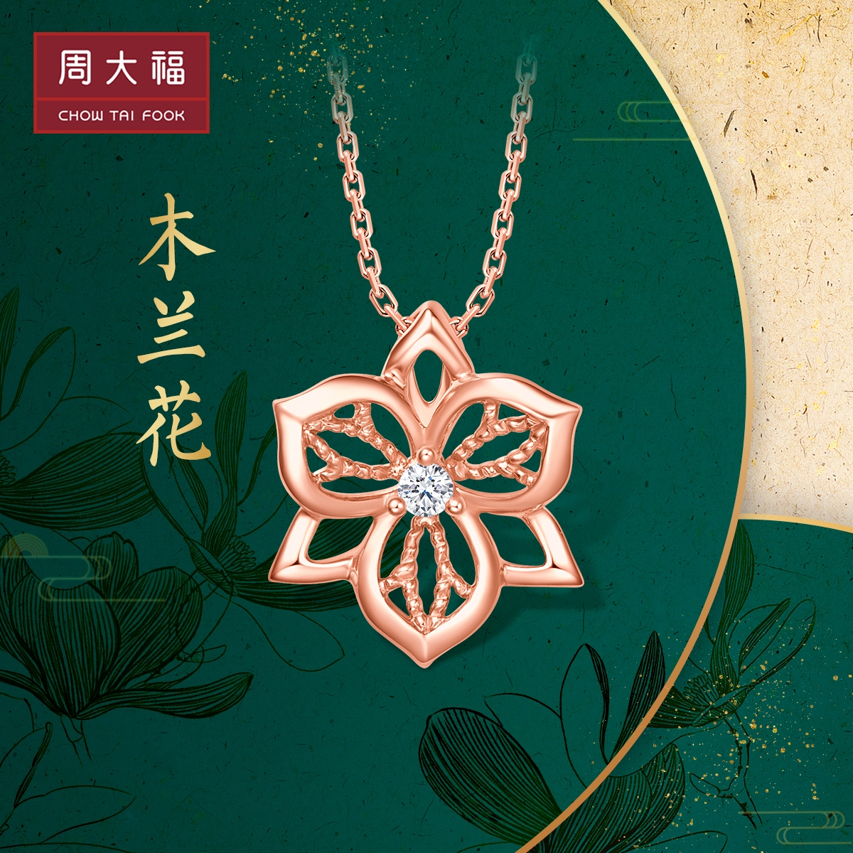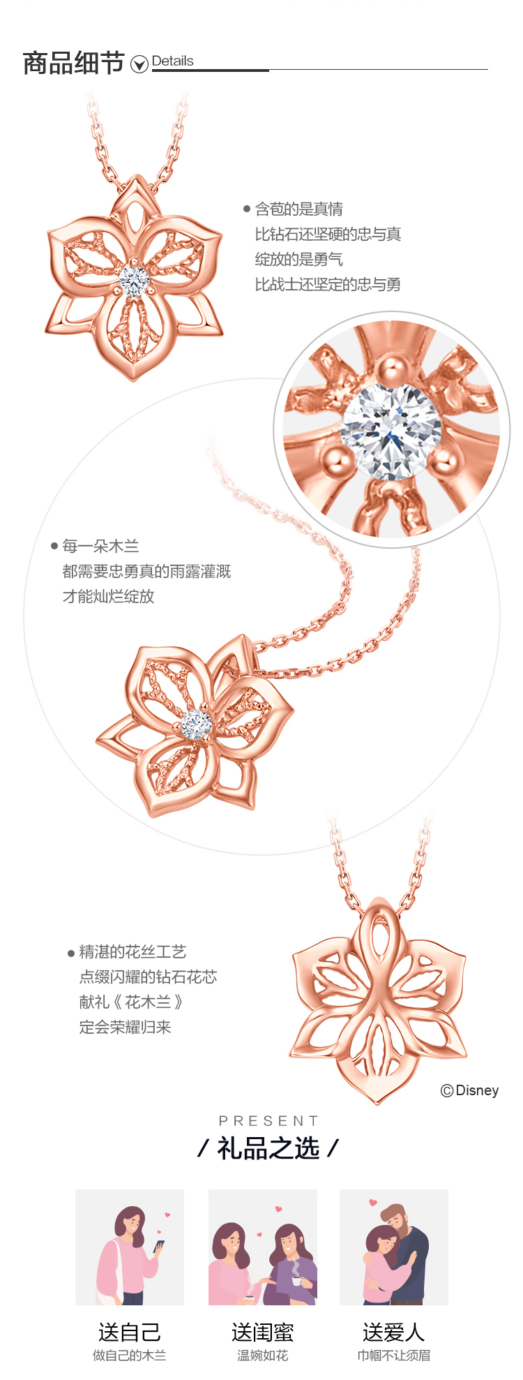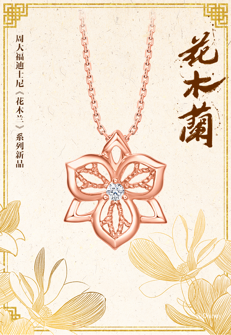 周大福 Дисней, бриллиантовая подвеска для принцессы, орхидея, золото 750 пробы