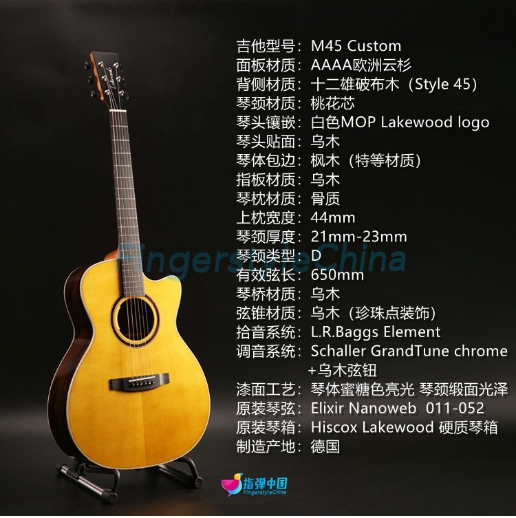 Германия Lakewood Lekewood M45 Custom Folk Huror относится к резервации настройки настройки коробочной гитары